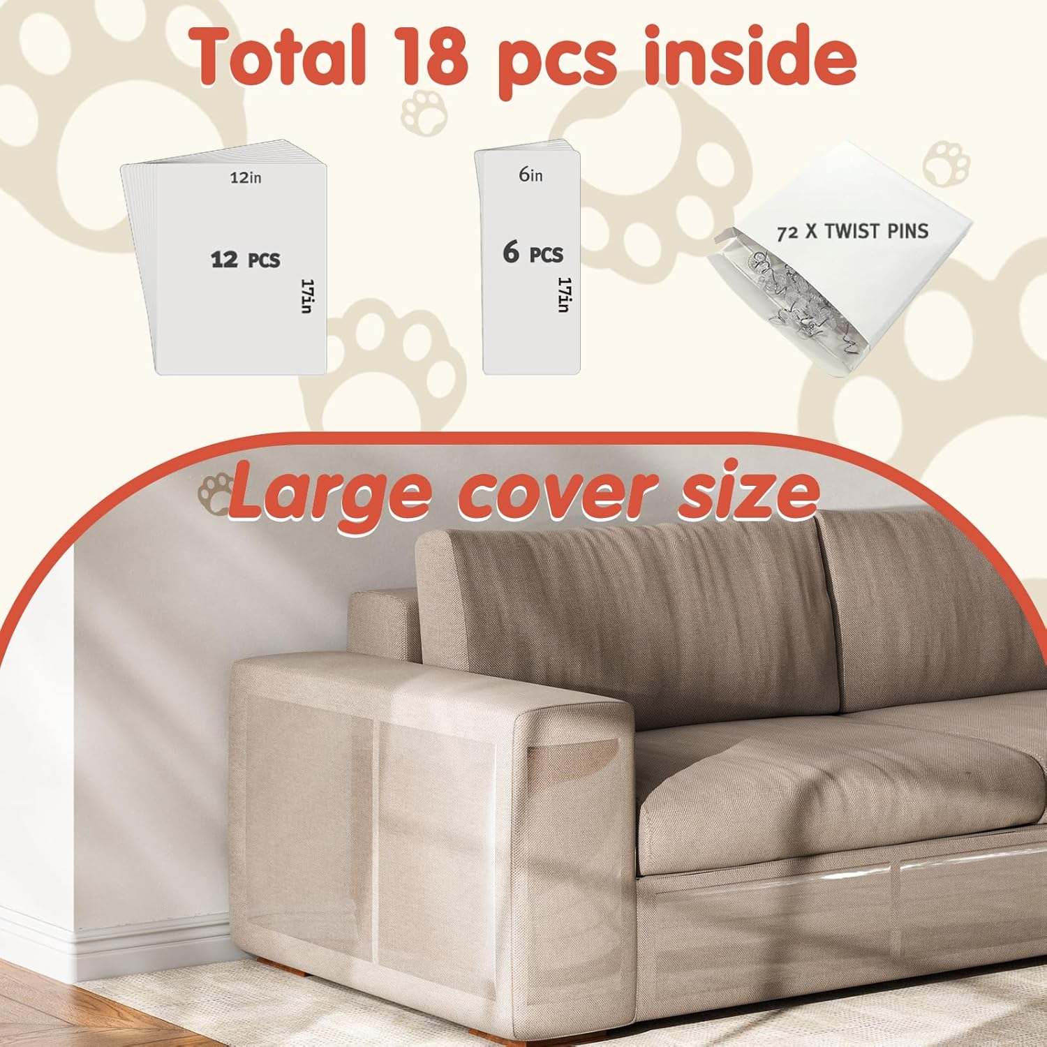 - Large Cover Size: There are total 18 pcs cat tape for furniture and 72x twist pins help to fix, 12 pcs 17" x 12" + 6 pcs 17" x 6" It's enough to cover most furniture surfaces