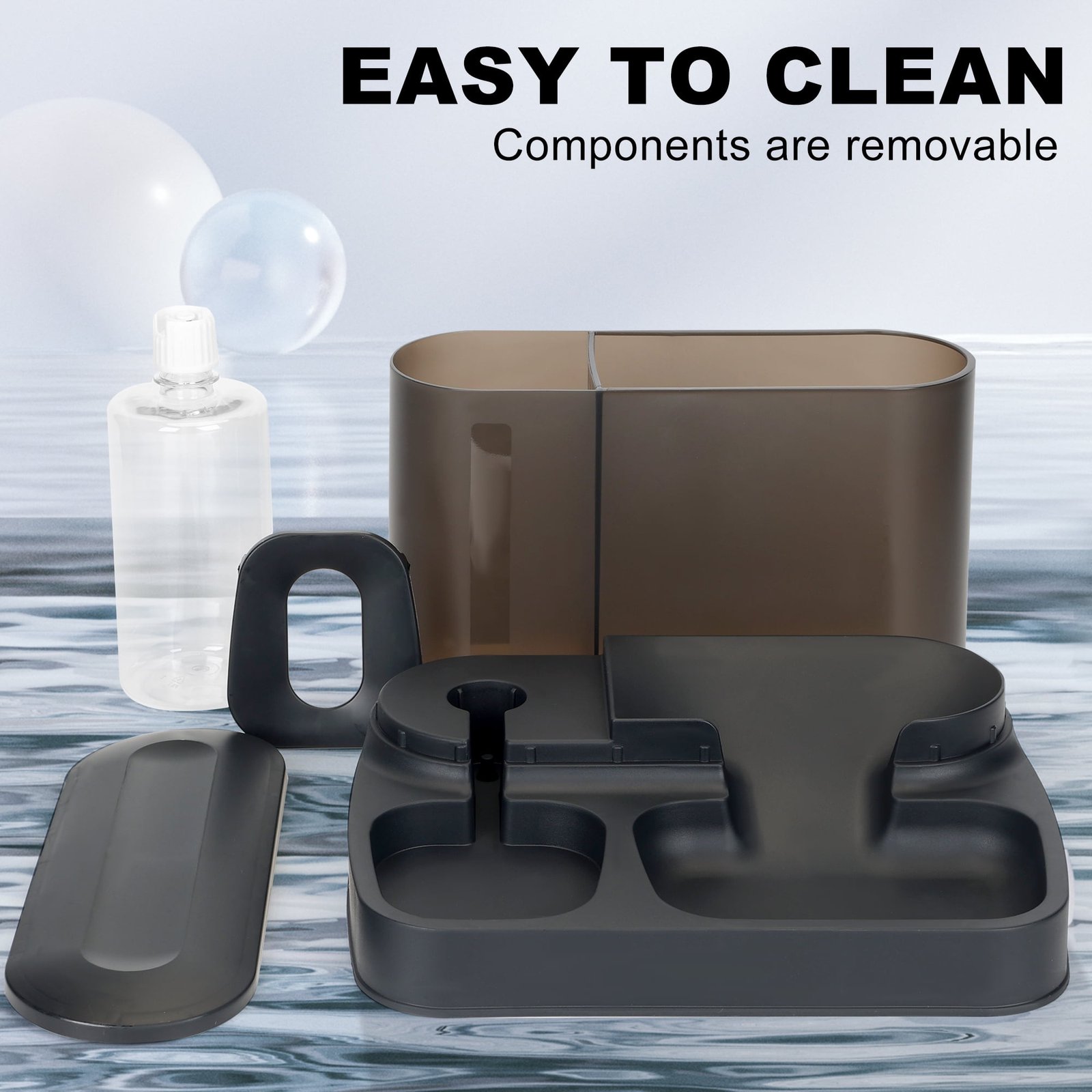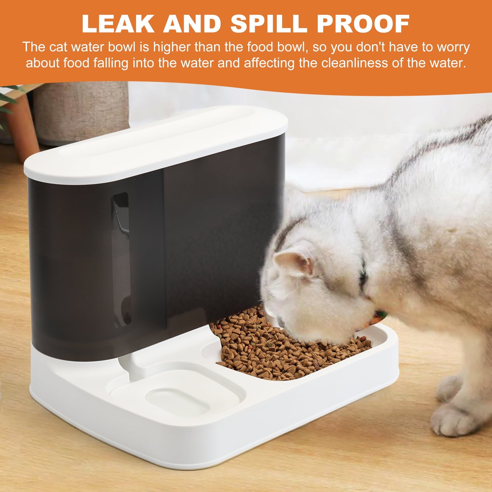 - 【Continuous Cleanliness and Hygiene】: The floating plate inside the water bowl prevents wetting the cat’s fur. The height of the cat gravity water bowl is higher than the food dispenser, so you don’t have to worry about food falling into the water and affecting its cleanliness.