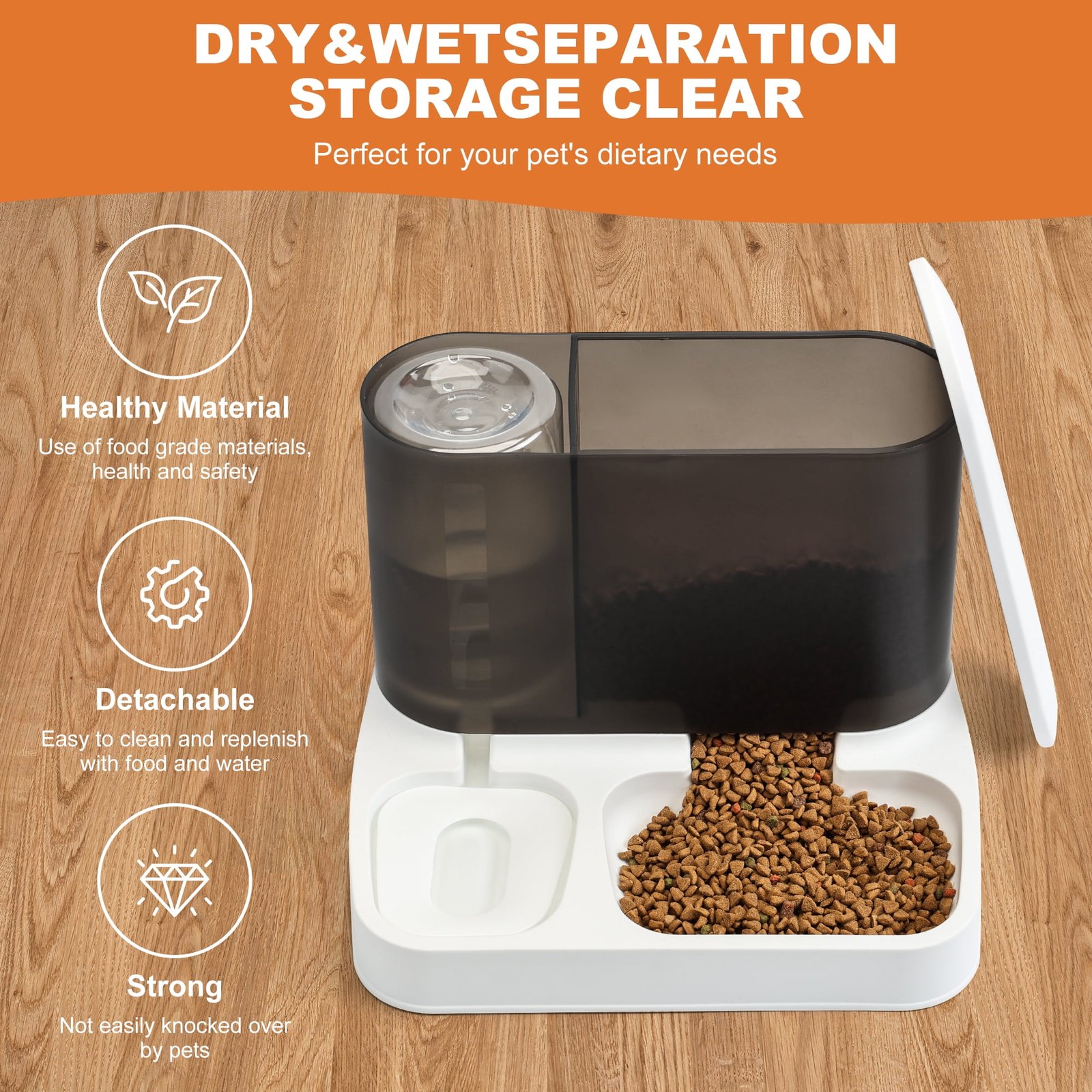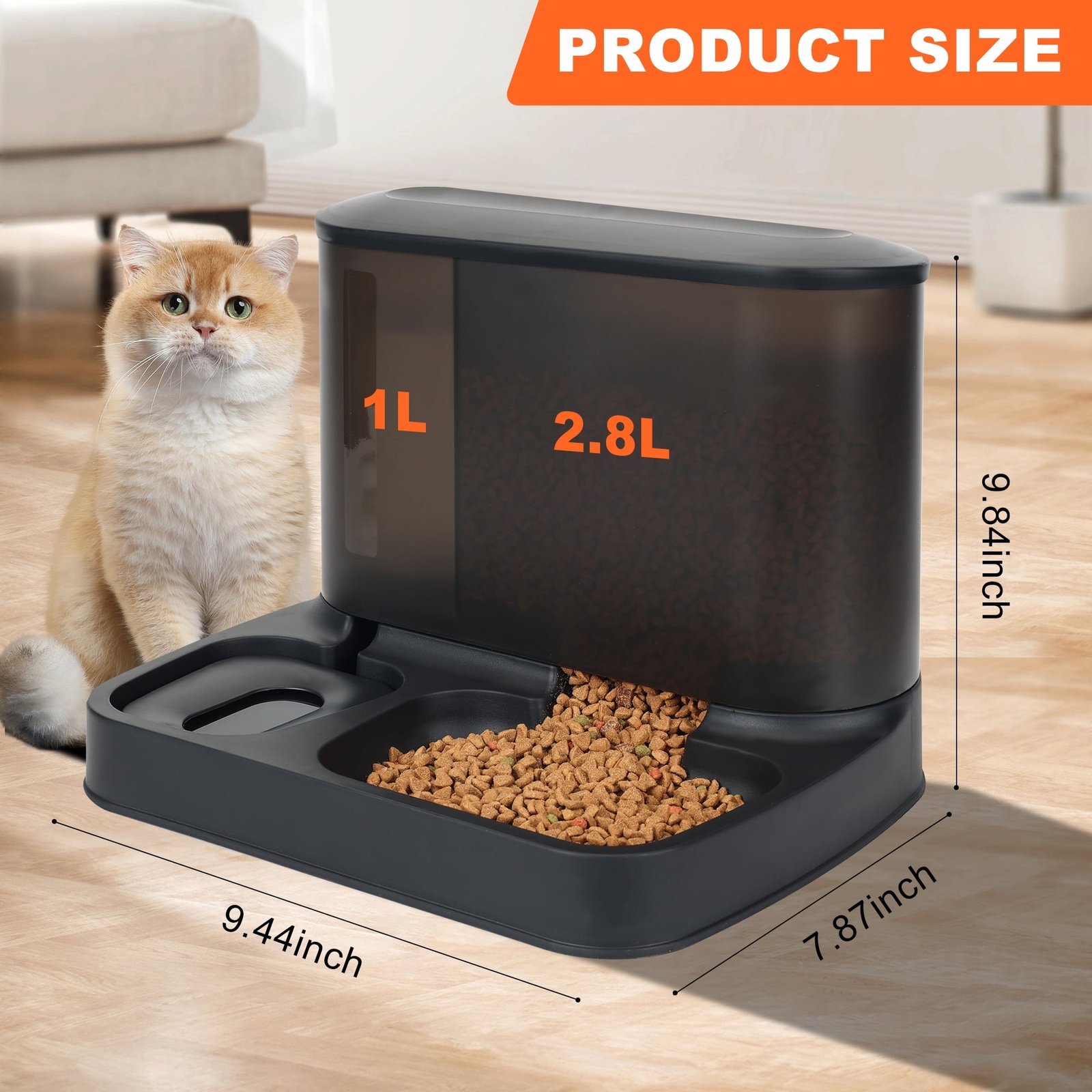 【More Practical 2 In 1 Design】: You no longer need to prepare multiple cat food dispensers, which are both wasteful of space and hard to dump! This automatic cat feeder functions as both a cat water dispenser, it can hold 4/5 gallons of dry cat food and 1/5 gallon of water for cats or small dogs.