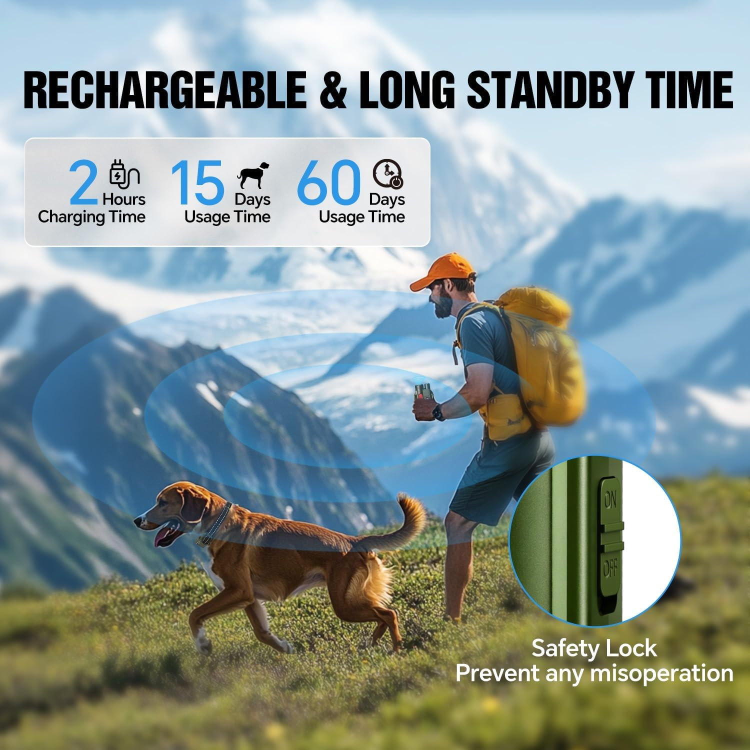 - [Long Battery Life – Up to 15 Days of Use] Enjoy up to 15 days of active use and 3 months of standby time on a single charge. This collar is ideal for long hikes, vacations, or daily training sessions without the worry of constant recharging. Perfect for extended outdoor adventures, you can train your dog all day without having to stop for a recharge. Whether you’re on a road trip or enjoying a weekend getaway, the collar remains charged and ready to use whenever you need it.