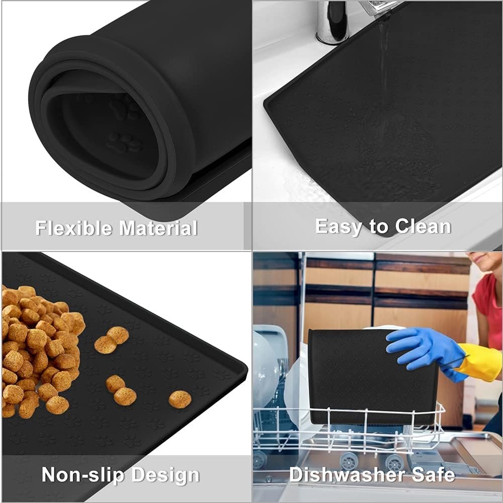 - Raised outer border height: 0.4″ to prevent water or kibble from rolling off the mat.