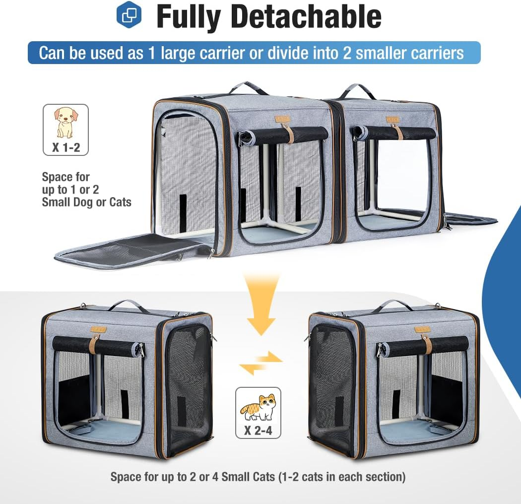 - [Spacious 2-in-1 Design] The carrier transforms into a secure playpen or travel crate, suitable for pets up to 35 lbs. Ideal for cats, dogs, and other small to medium pets, it offers comfort and flexibility.