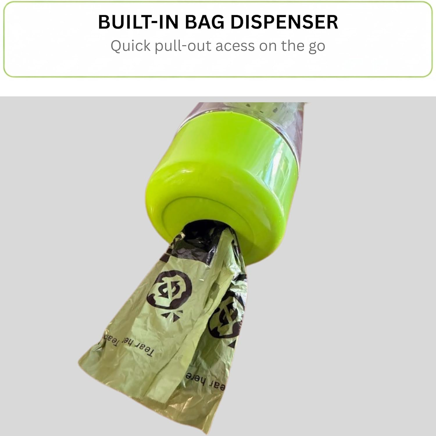 • ✨ ALL-IN-ONE SOLUTION FOR BUSY PET PARENTS – Stop juggling multiple items! Our 3-in-1 design combines a 13,5oz (400ml) water dispenser, 100g food container, AND built-in waste bag holder with 60 premium bags included. Perfect for dogs and cats of all breeds and sizes. Travel light, stay organized, adventure more!
