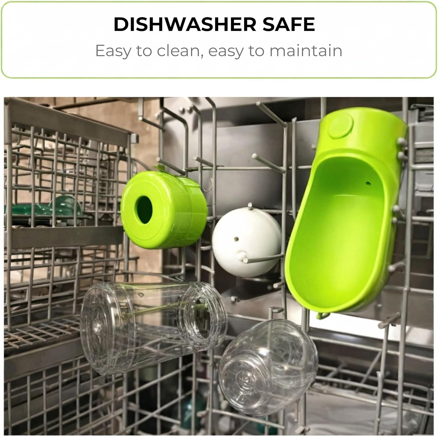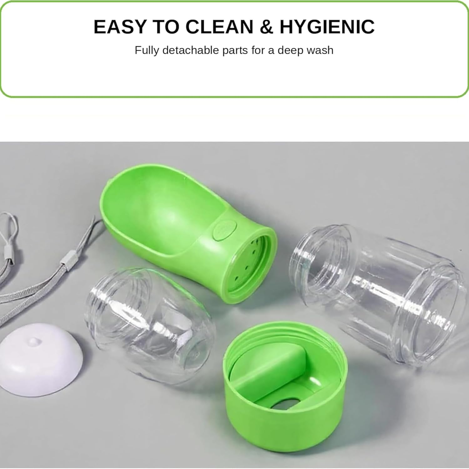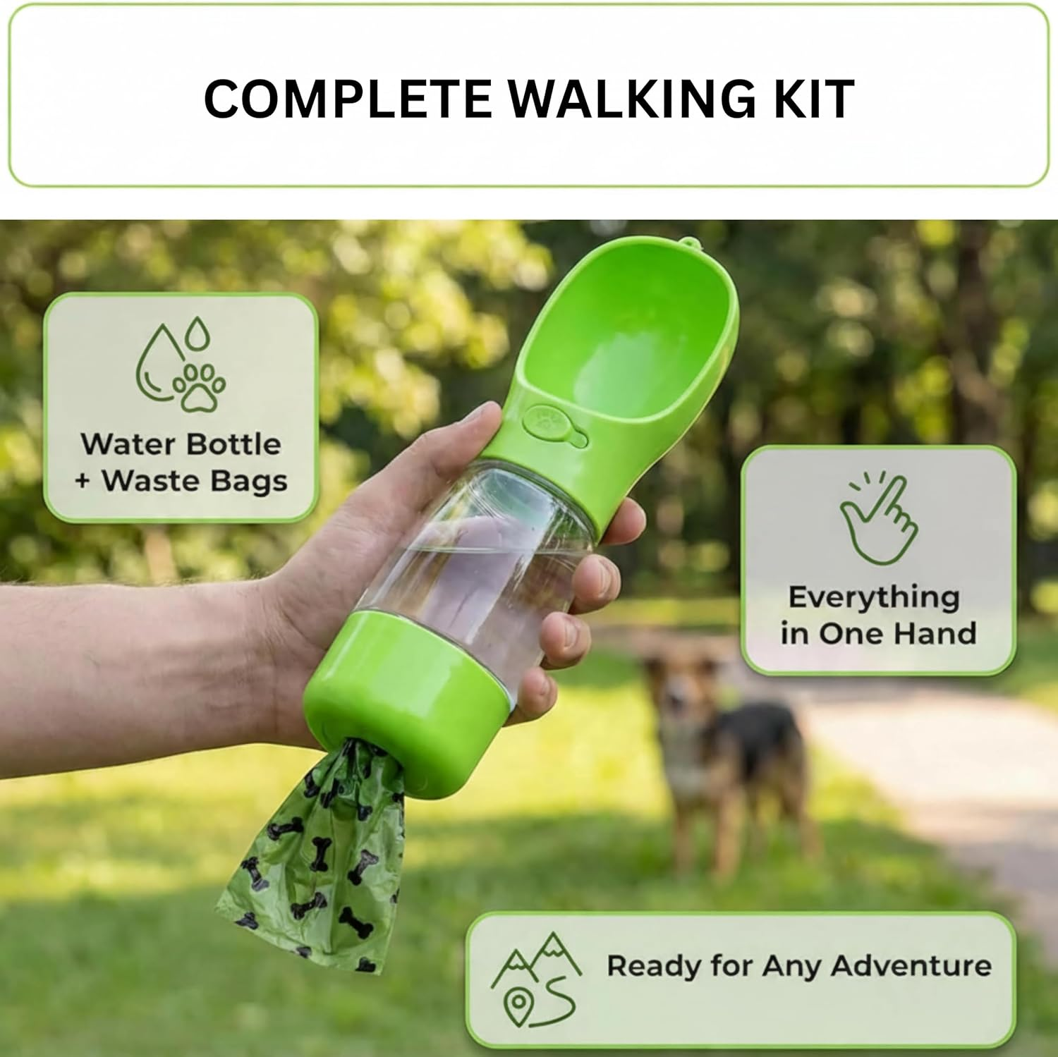 PERFECT 3-IN-1 TRAVEL SOLUTION FOR DOGS & CATS Are you tired of carrying multiple items when traveling with your furry friend? Our innovative 3-in-1 portable pet water bottle is the ultimate solution for dog and cat owners who love adventure! WHAT’S INCLUDED: Leak-proof water dispenser (400ml/13.5oz capacity) Built-in food container for treats or kibble (150ml) Integrated poop bag holder with 60 biodegradable waste bags Durable metal carabiner clip for easy attachment PREMIUM QUALITY & SAFETY: Made from BPA-free, food-grade materials that are completely safe for both dogs and cats. The upgraded silicone seal ring and one-button lock system guarantee zero leaks in your bag, car, or backpack. Wide water trough design accommodates pets of all sizes. ULTRA PORTABLE & CONVENIENT: Weighs only 7oz and fits easily in any backpack, purse, or car cup holder. The built-in carabiner attaches securely to backpacks, leashes, belt loops, or cat carriers for hands-free carrying. One-hand operation makes hydration quick and easy during walks, hikes, or travel. PERFECT FOR: ✓ Dog walking & cat travel ✓ Hiking, camping & outdoor adventures ✓ Beach days & park visits ✓ Road trips & vet appointments ✓ Training sessions & jogging ✓ Any outdoor activity with your pet ECO-FRIENDLY DESIGN: Includes 60 biodegradable waste bags that are gentle on the environment. The integrated dispenser fits standard-size bags for easy refills. Available in attractive green color. SATISFACTION GUARANTEED: We stand behind our product with responsive customer service. Join thousands of happy pet parents who trust our 3-in-1 solution for their dogs and cats! ORDER NOW and make every adventure with your furry companion easier and more enjoyable – whether they bark or meow!