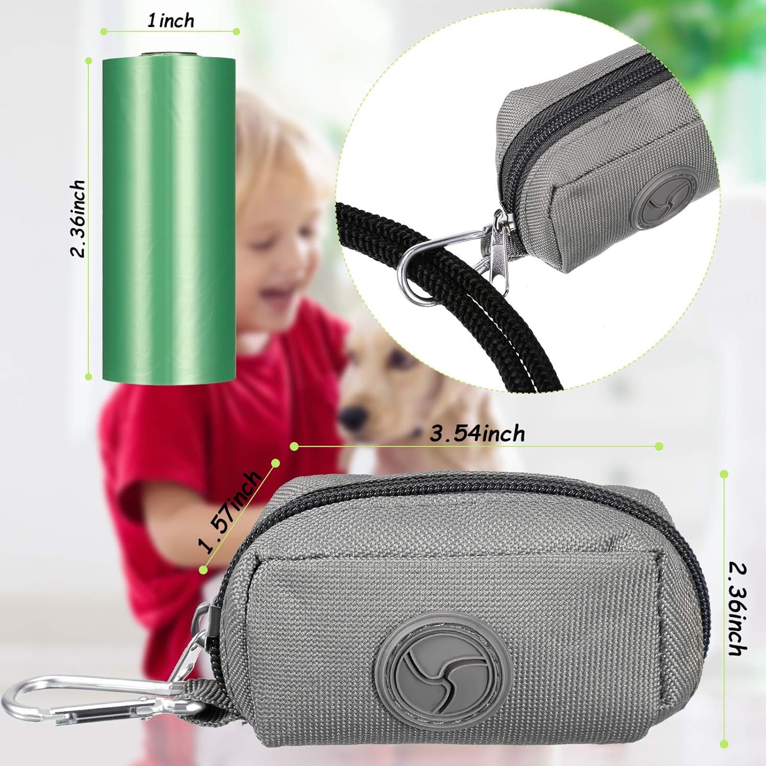 A set of 3 zippered dog poop clip bags with dog rope and 3 rolls of portable leak-proof dog poop waste bags, suitable for outdoor walking and running