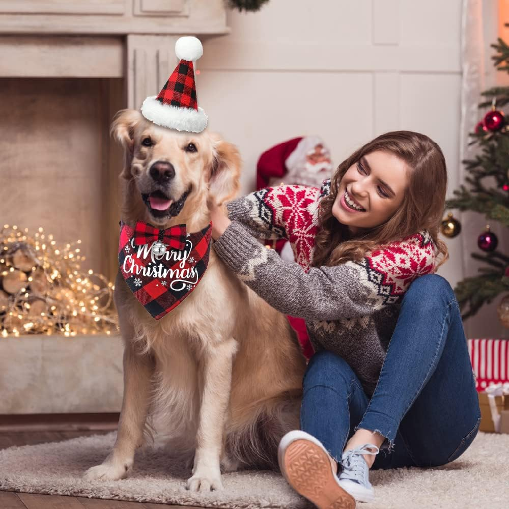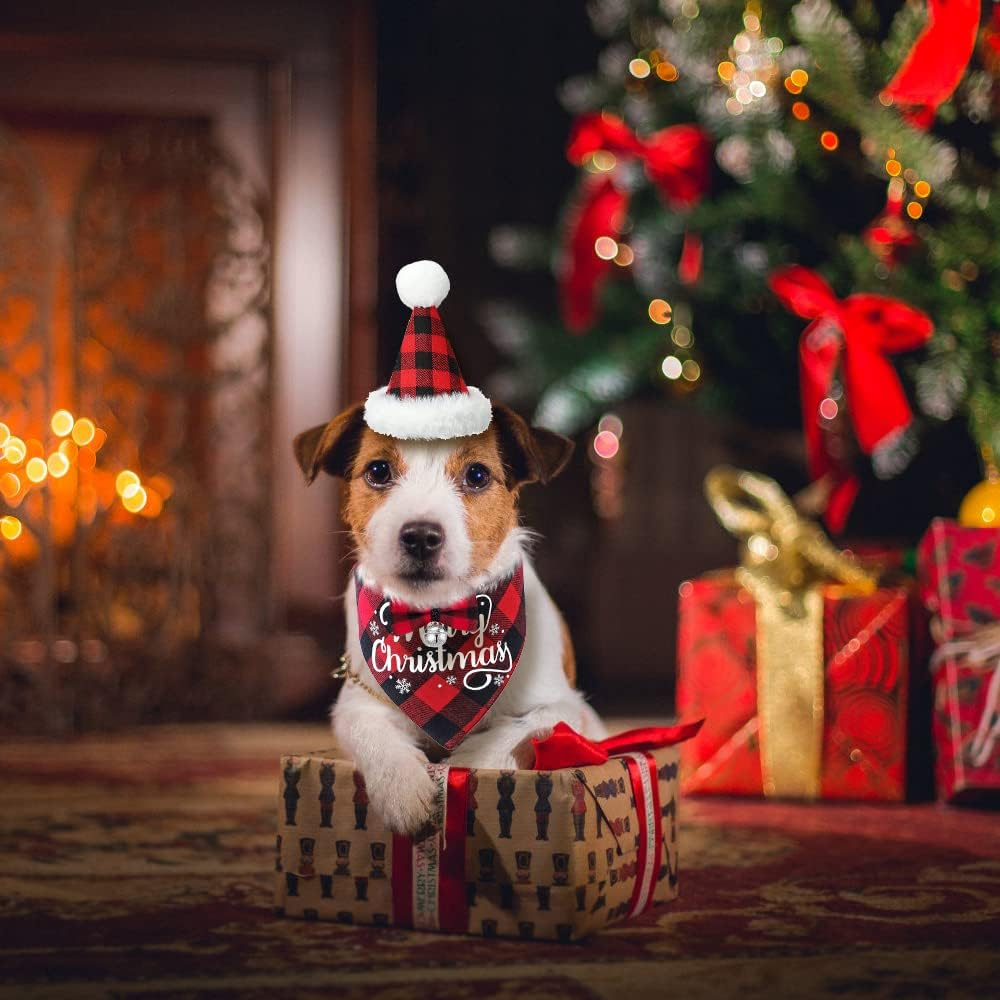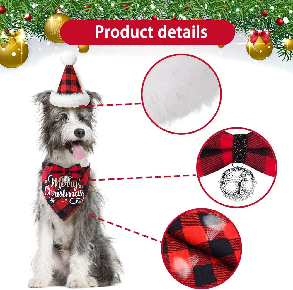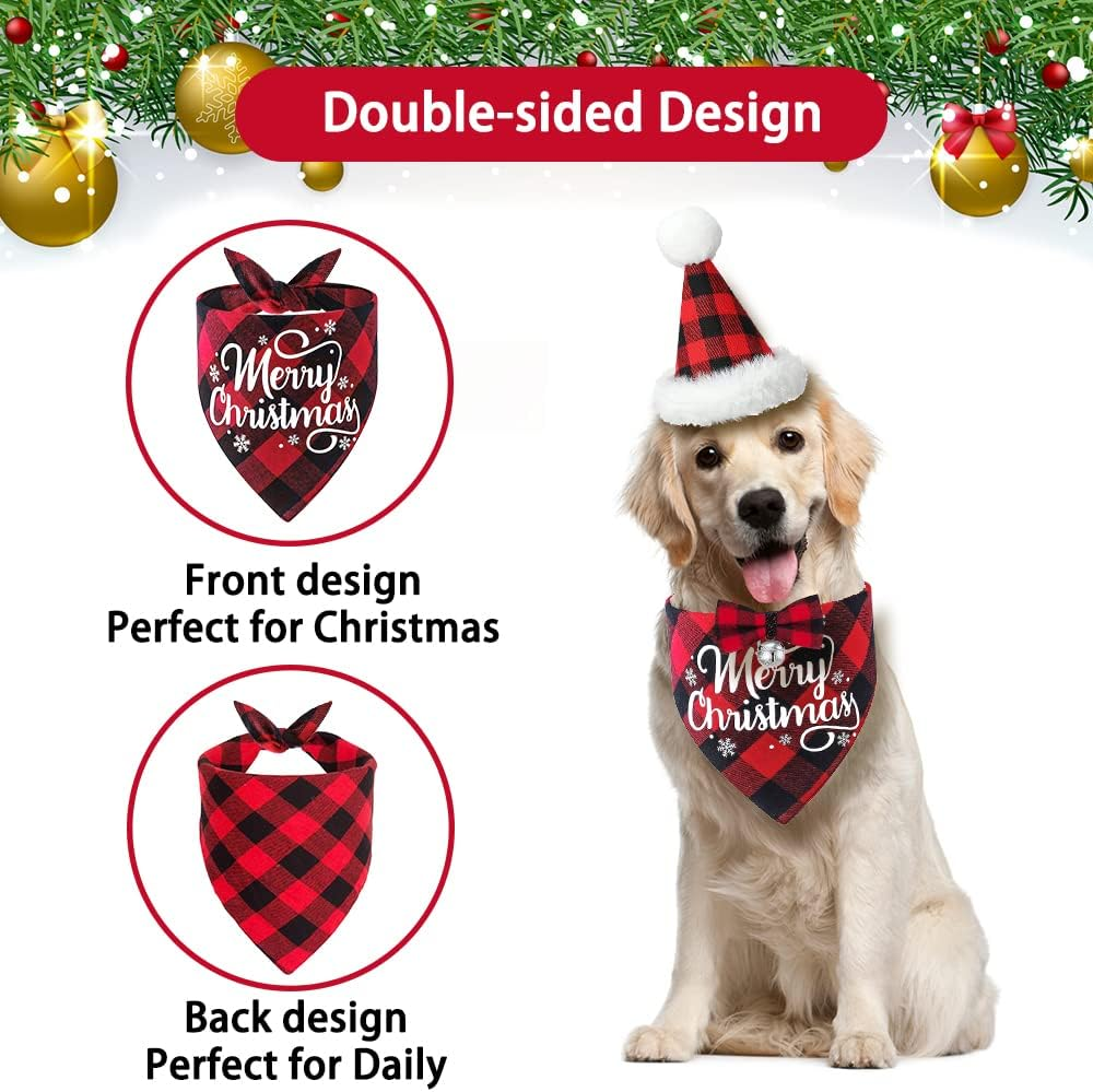 - 【Christmas Dog Outfit】Includes 1pcs Christmas dog bandana, 1pcs Christmas dog hat, 1pcs Christmas dog bowtie. Classic Christmas Plaid Design with “Merry Christmas” and snowflake pattern, full of Christmas atmosphere, easy to make your puppy more cute and charming!