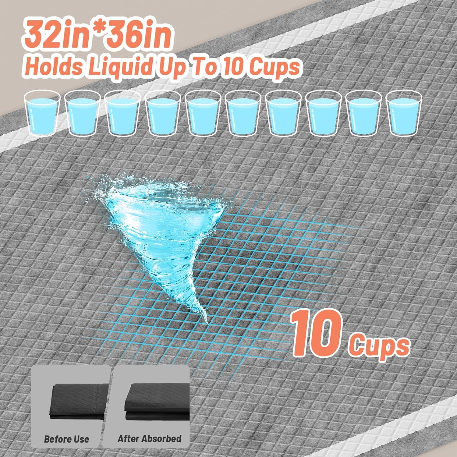 - Thicken & Leak-Proof Design: Our potty pads are more efficiently to prevent floor and carpet from damaging, absorb liquid faster, thickened PE film is leak-proof and durable, the polymer core turns urine into gel quickly, keep your pets, kids or the sick elderly feel comfortable all the day