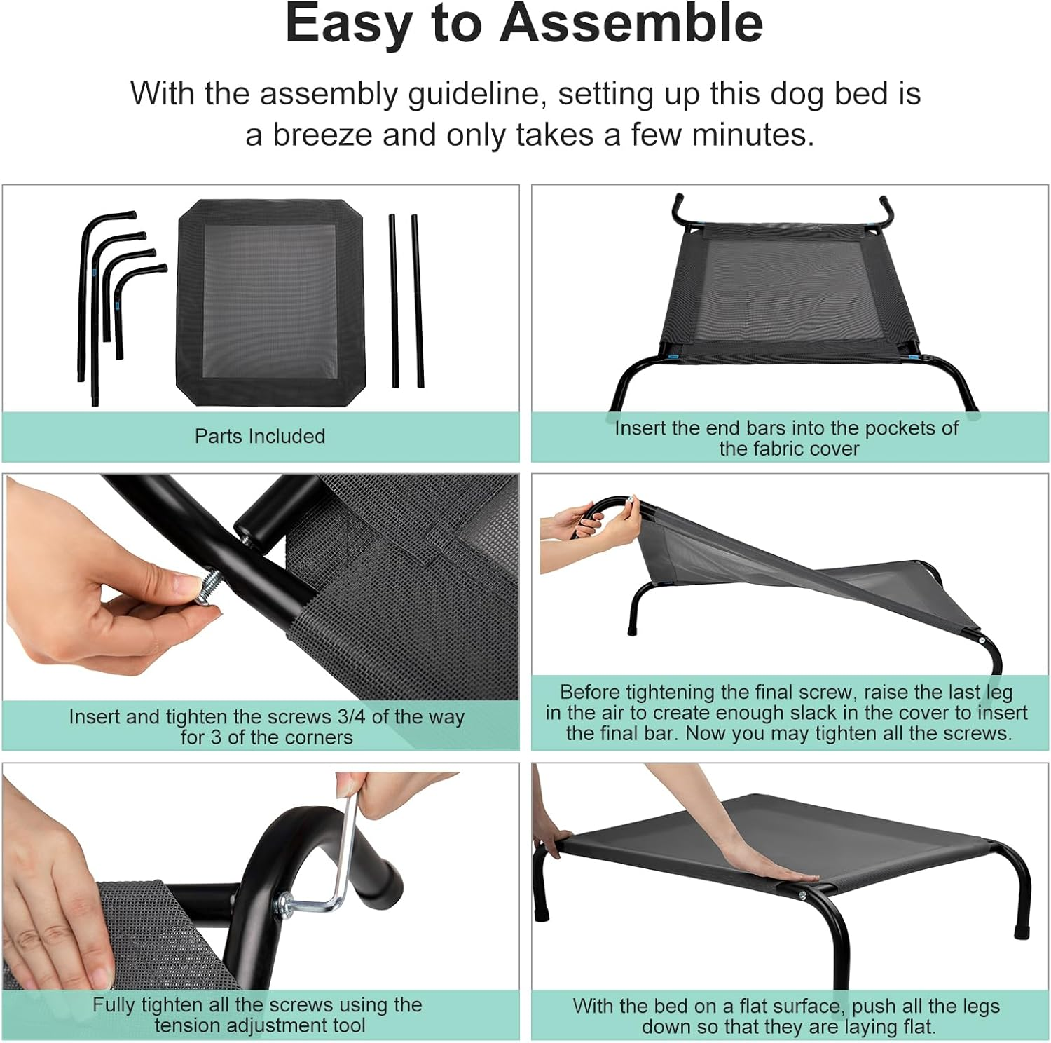 - Enhanced Comfort and Airflow: Our Cooling Elevated Dog Bed Cot provides an elevated sleeping surface that promotes airflow and keeps your large dog cool and comfortable all night long.