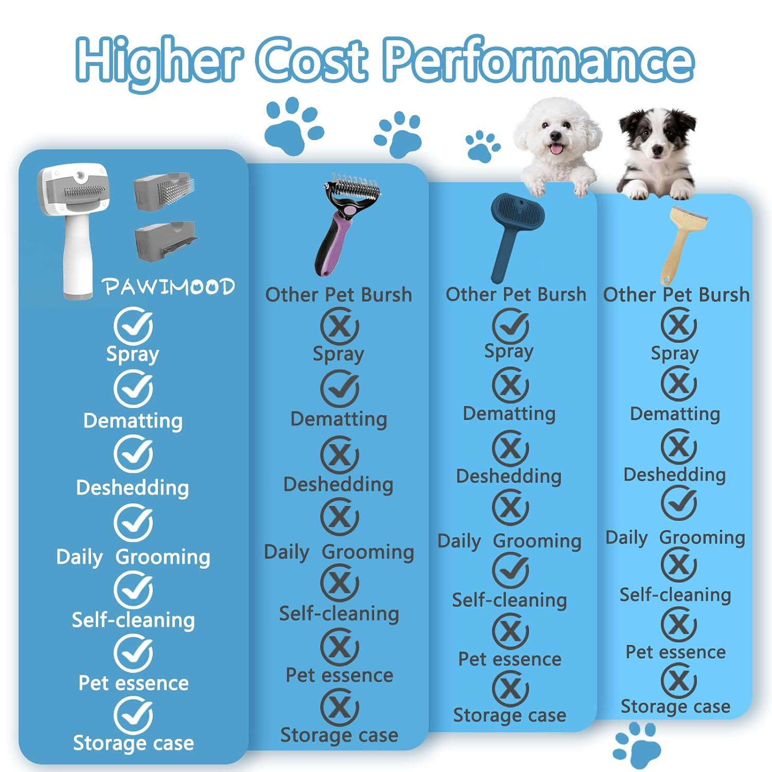 • THE ULTIMATE PET STEAM BRUSH FOR DESHEDDING & DEMATTING: Our cool mist spray brush for dogs and cats releases a micro-fine spray that effortlessly softens tough knots and tames static. Expertly designed for shedding control, it's the ultimate tool for dog hair removal and cat grooming, reducing shedding by up to 90% to leave your pet's coat brilliantly shiny, manageable, and tangle-free. Easily switch between Power Mist and Soft Mist modes for all coat types