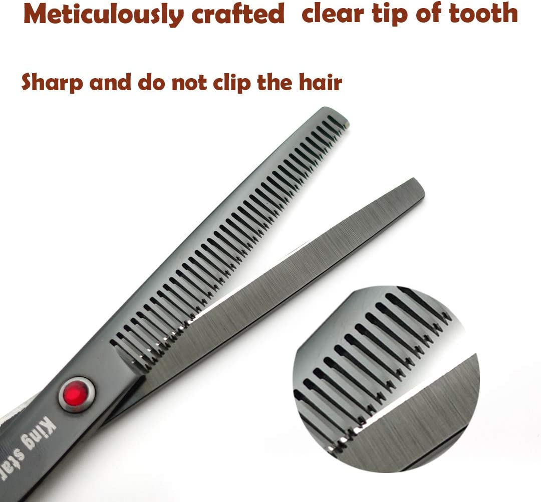 - SHARP CONVEX EDGE .The edge line of the blade is evenly polished, using the convex arc design to increase the thrust of scissors,to make the cutting more smooth and stable.With meticulously crafted clear tip of tooth ,the thinning scissors are sharp and do not clip the hair.