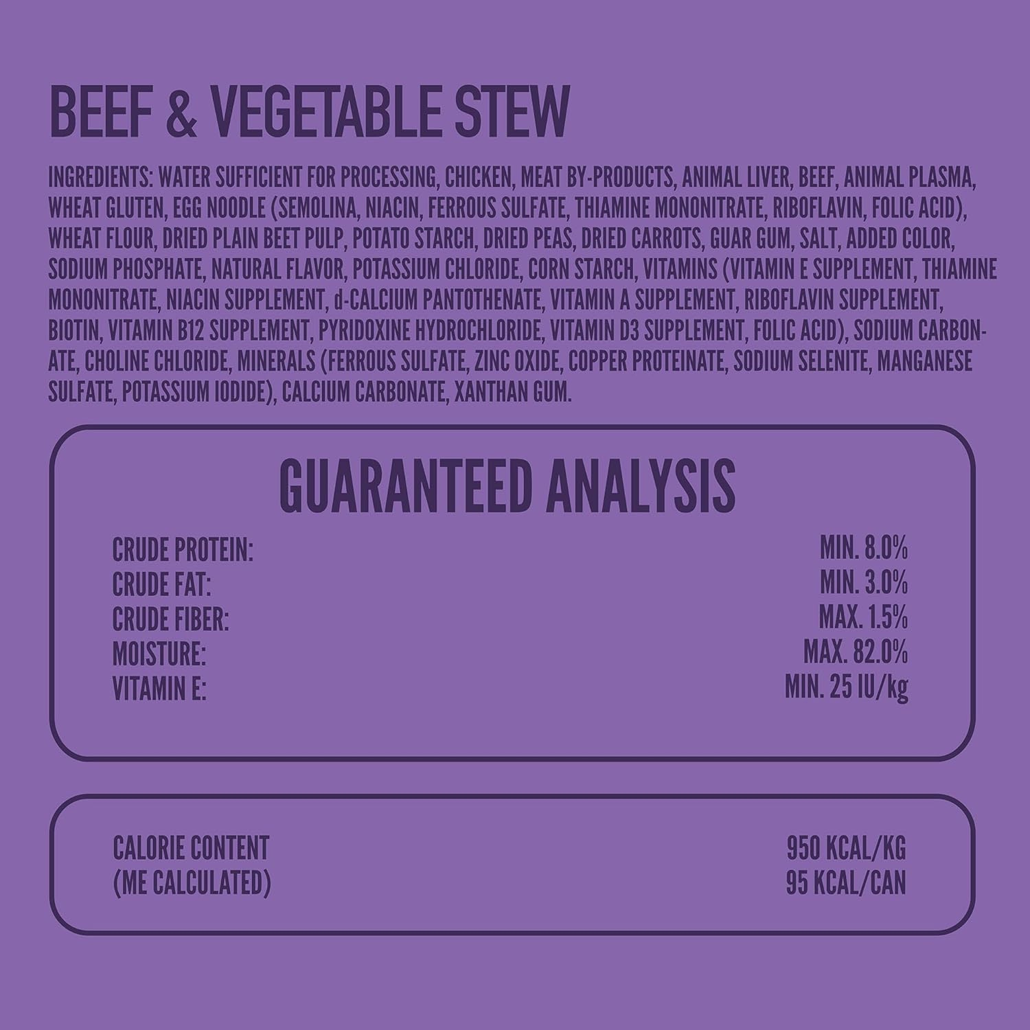 - Hearty Beef and Wholesome Vegetables: Our wet dog food features actual beef and a medley of vegetables, offering a high-quality protein source, essential vitamins, and minerals that support muscle development, energy levels, and overall health