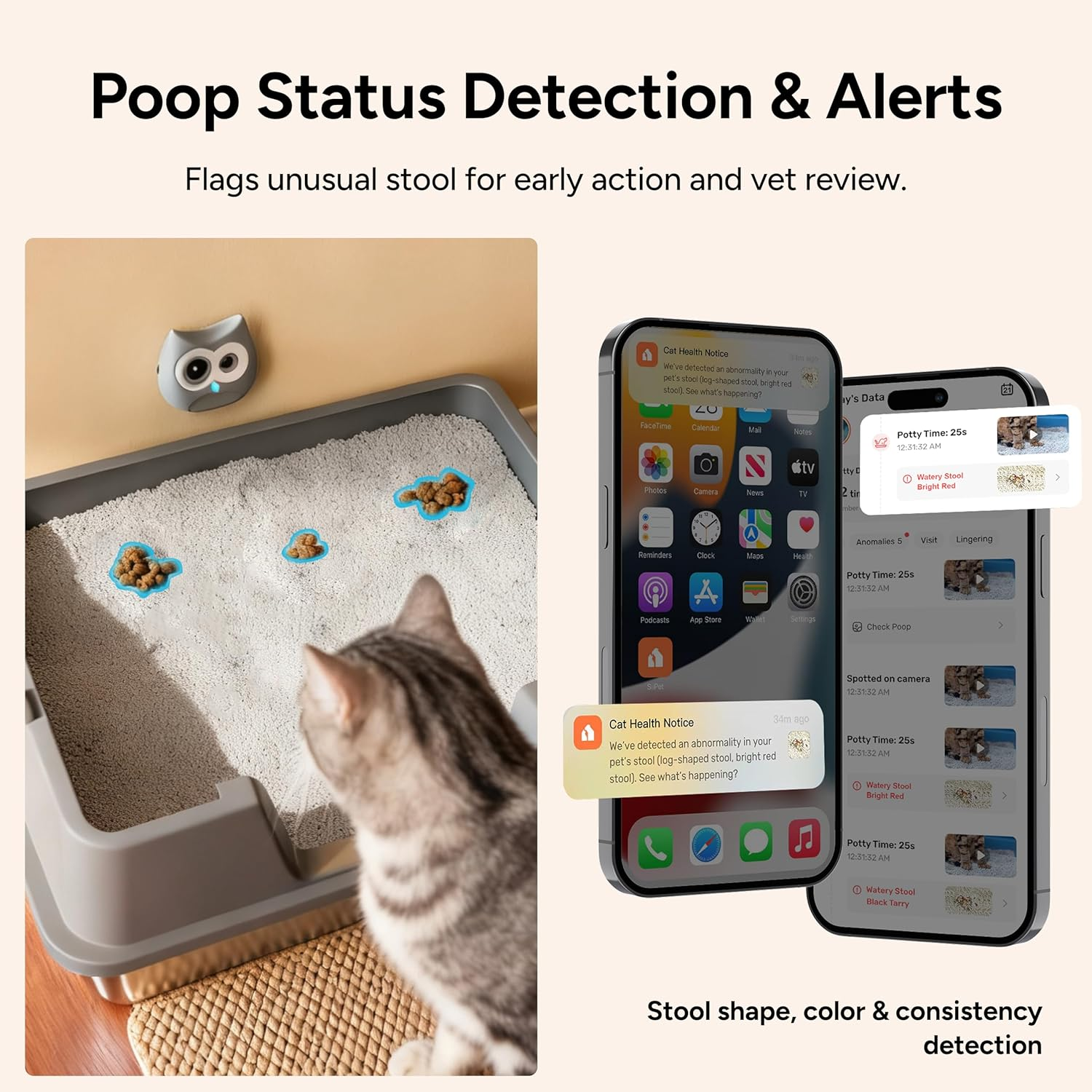 - AI KNOWS WHAT MATTERS: The first AI-powered camera for cats’ litter boxes, designed for quick health checks and easy sharing with your vet. Advanced visual algorithms provide scientific tracking, catching subtle changes you might miss, and supporting your care for your cat.