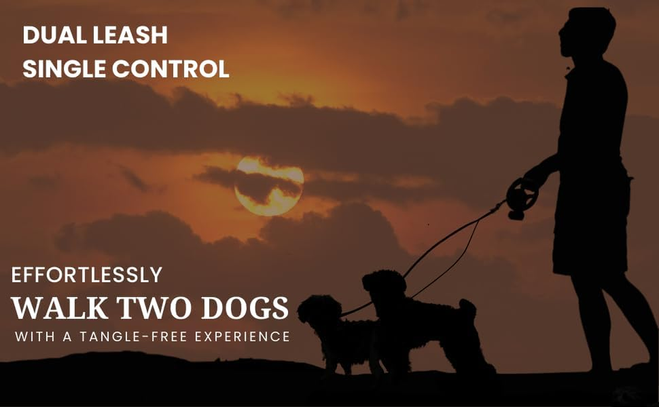 - One-touch lock & unlock: Control both leashes effortlessly with a single button. The dog leash’s one-touch system makes it easy to lock or unlock, allowing seamless management for you and maximum freedom for your dogs.