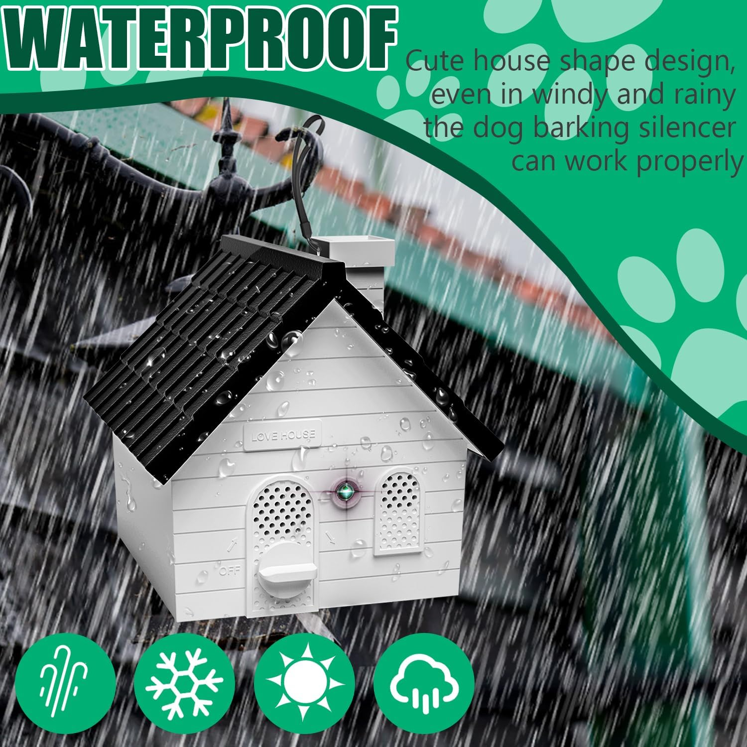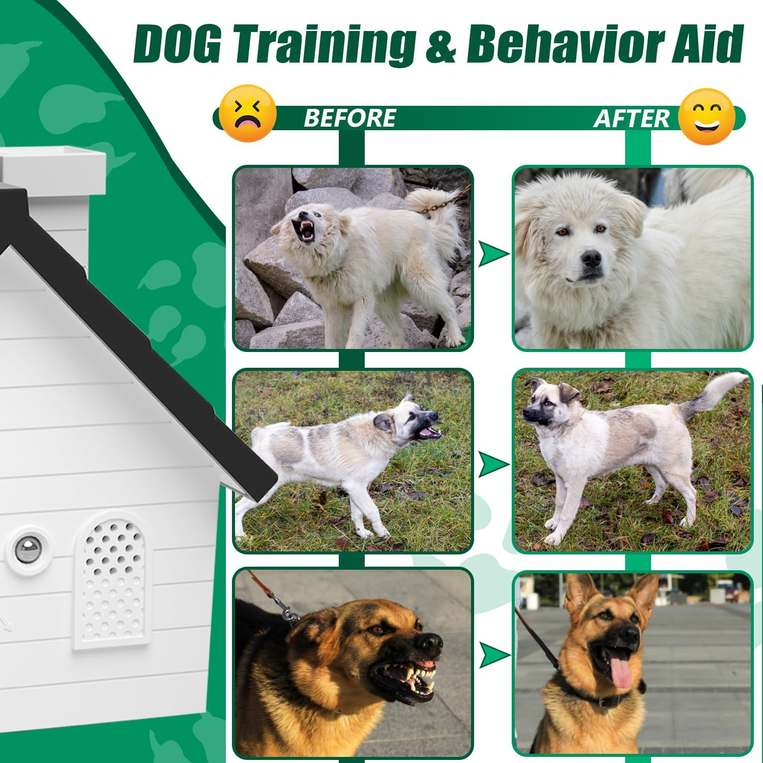 - Waterproof and Durable – Dog barking deterrent devices are designed in a cute black and white house shape, even in windy and rainy days, the dog barking silencer can work properly, you could hang the bark box on trees, fenced gardens or kennels, to correct your dog's barking habit and decorate your home at the same time
