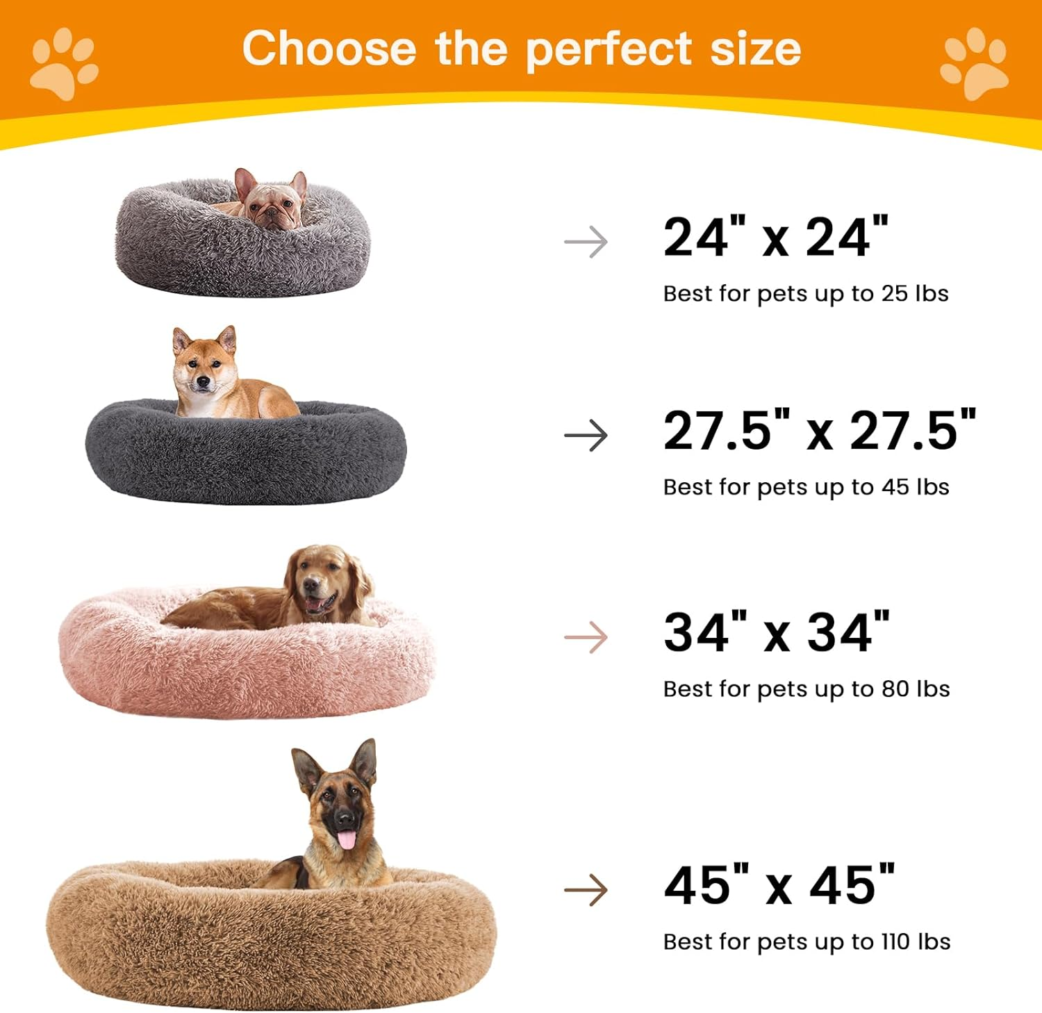 - 【Multiple Size】You can find a small to large calming dog bed:[small dog bed come in 24″x24″x7″-Up to 25Lb], [puppy beds for medium dogs come in 27.5″x27.5″x7″-Up to 45Lbs], [for large dogs(german shepherd) come in 34″x34″x8″-Up to 80Lbs].