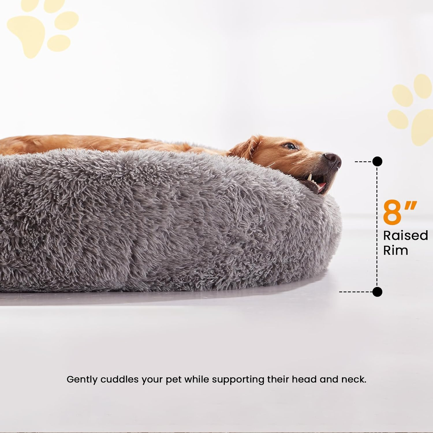 - 【High-Quality Sleep Anti-Anxiety】The Calming Plush Dog Bed is filled with high-fluffy white PP cotton, which has a stronger bearing capacity and rebound effect. The raised edges create a sense of security and provide excellent support for the head&neck and relieve joint and muscle pain.