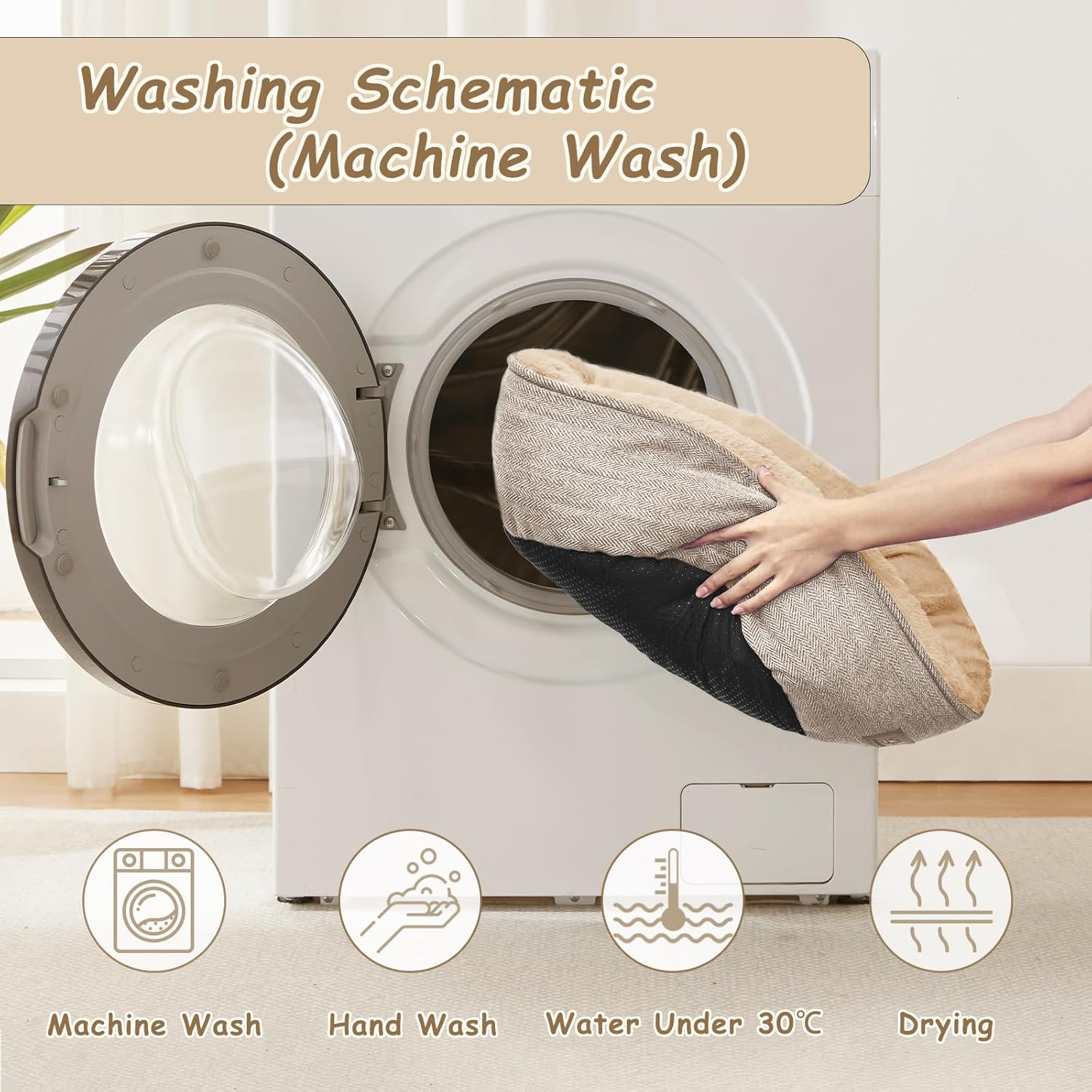 - Cozy and Washable: The soft short plush sleeping surface provides warmth and comfort, while the high elasticity PP cotton filling relieves sleep stress. The cat bed can be machine washed directly to keep the bed fresh.