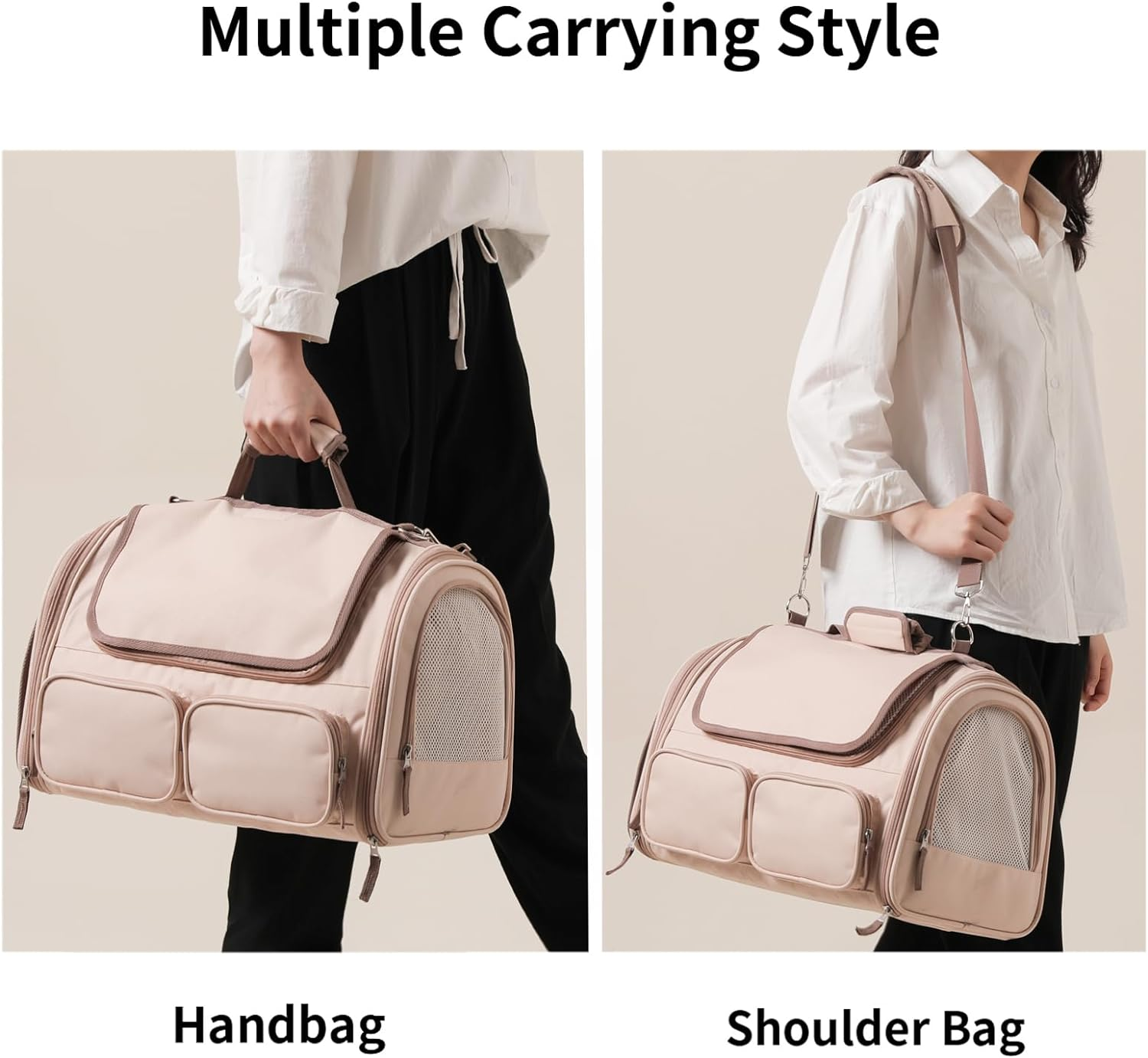 - Easy Access & Ventilated – Updated to 4 entry doors, mesh windows on 2 top and 2 sides creating breathability and two-way visibility. All enters in this cat travel bag have zippers for easy pet loading with more comfortable, also veterinarian friendly.