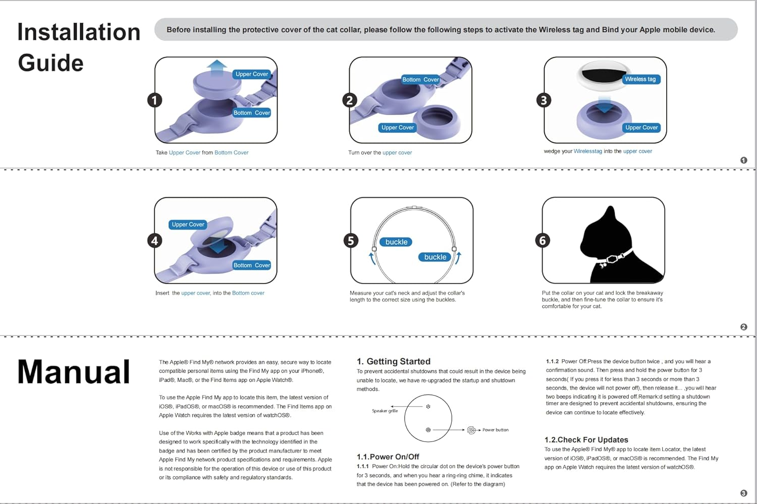 - Integrated tracker Holder: Each cat tracker collar comes with a smart finder tag that seamlessly fits in the silicon holder, integrating find my tracking into the collar. The holder is compatible with AirTag, you can also use it as an airtag cat collar,[Warm Tips] If you need further help, please refer to the user manual attached in the package. Our after-sales team is always here to help you. (iOS Only, Not for Android)