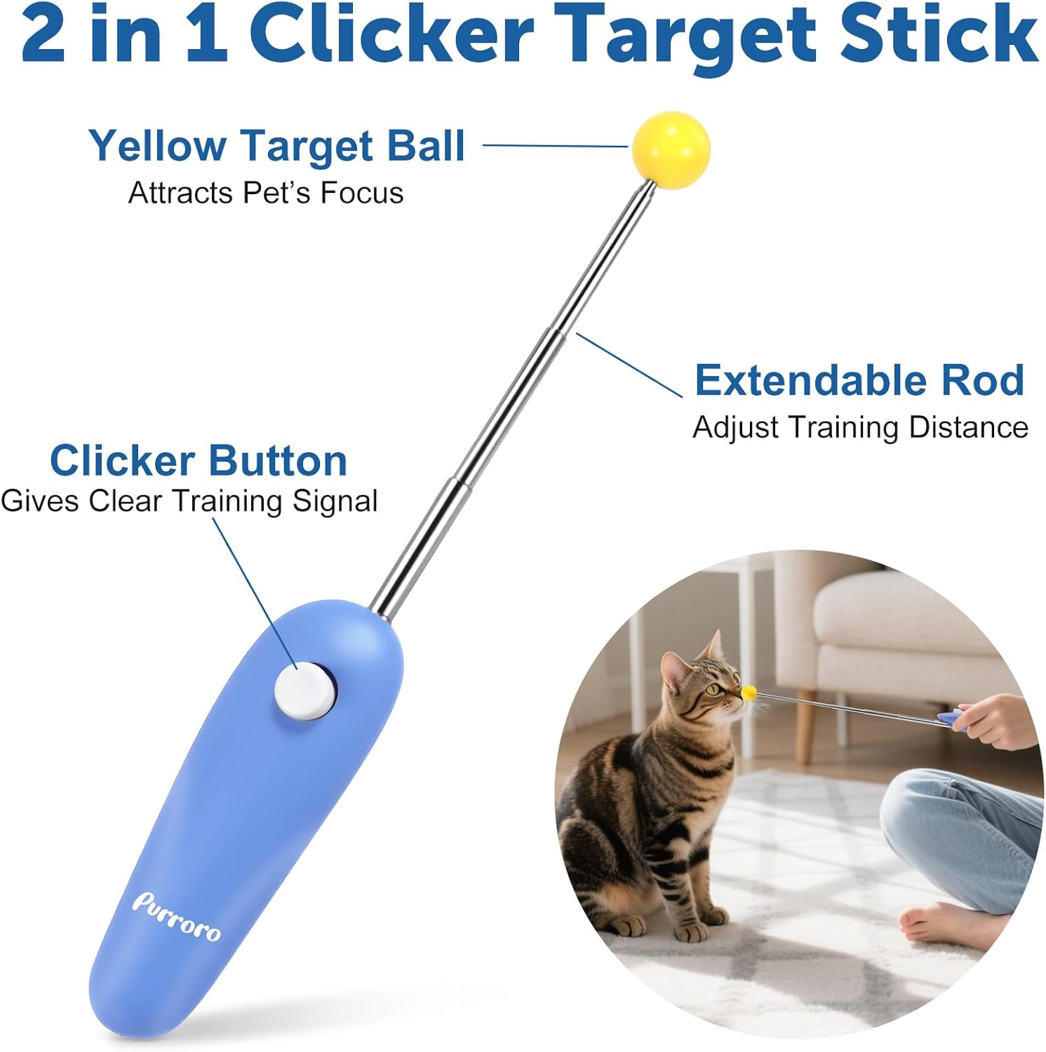 - Cat Training Clicker Kit – Includes a finger ring clicker and a retractable target stick with yellow ball, giving you two tools for guiding and interacting with your cat during training or play.