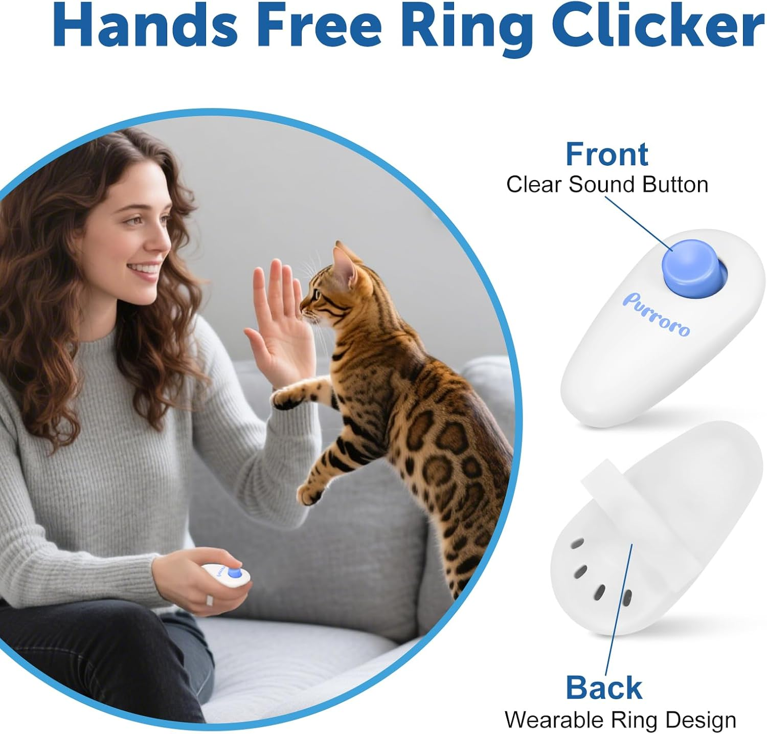 - Finger Ring Clicker for Clear Feedback – The included finger clicker produces a crisp, easy-to-press sound, helping guide your cat during training or interactive play without startling them.