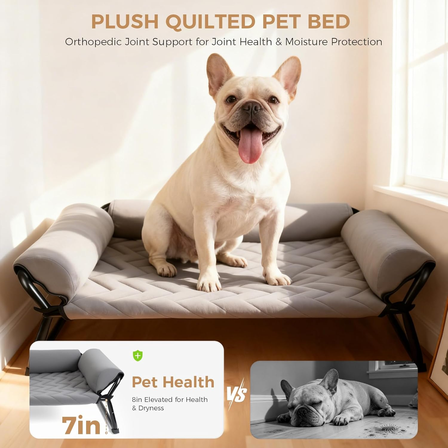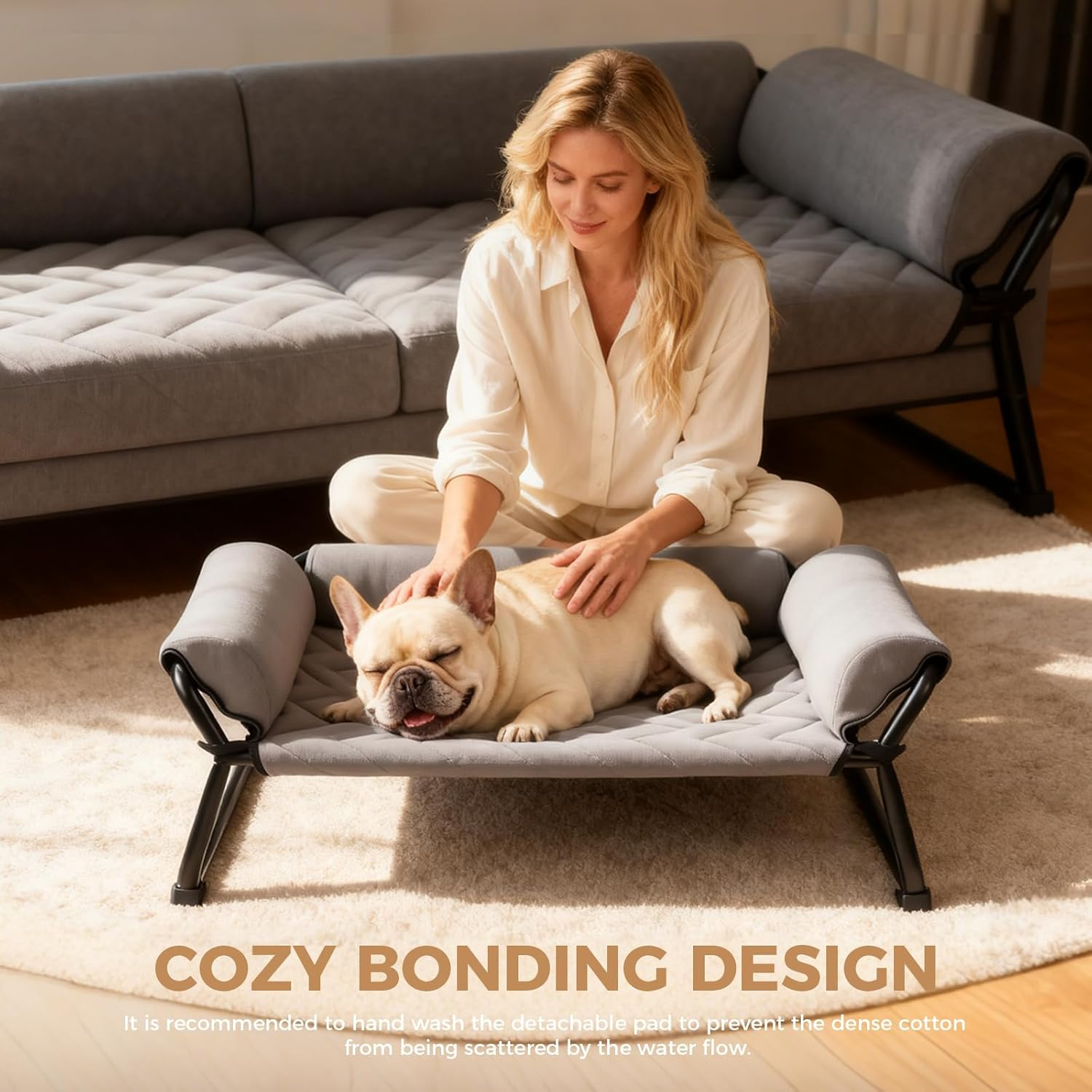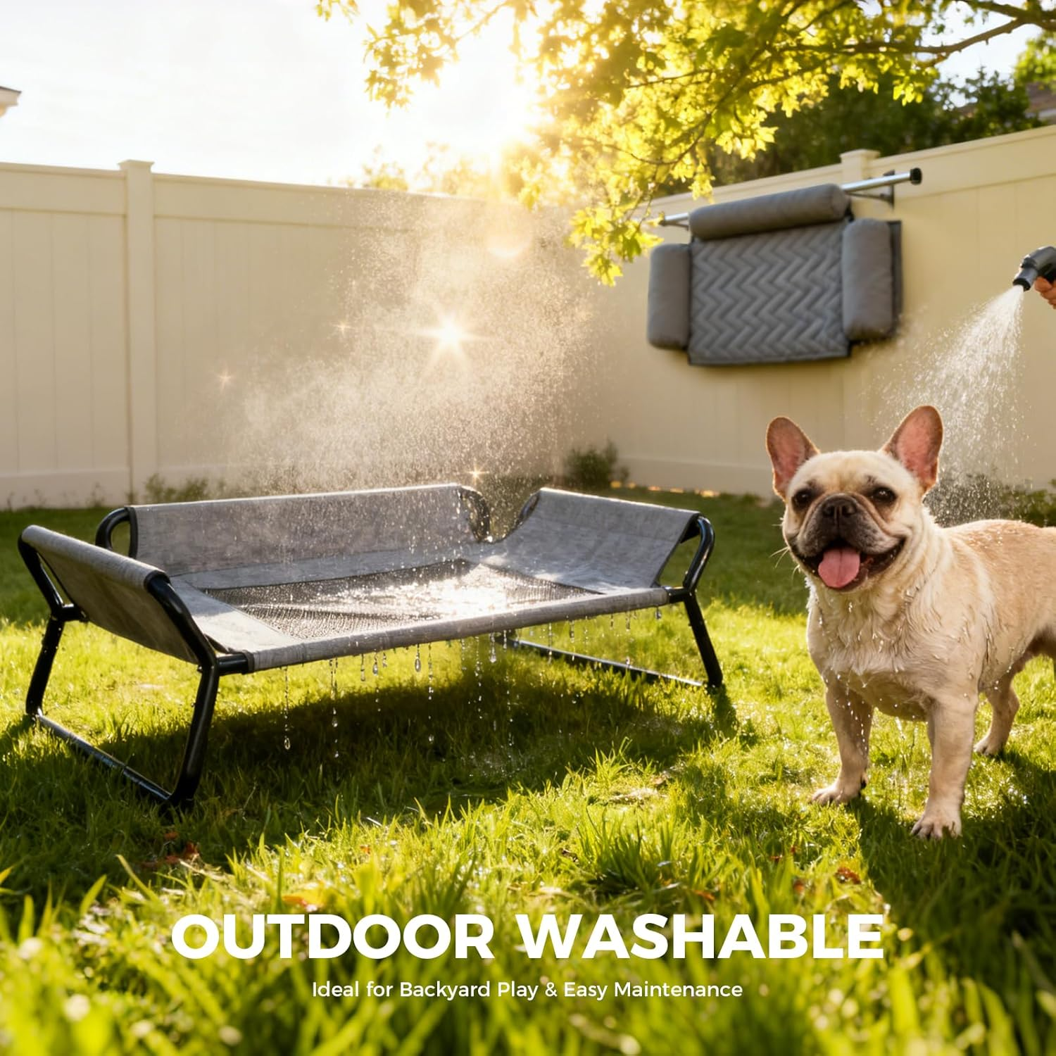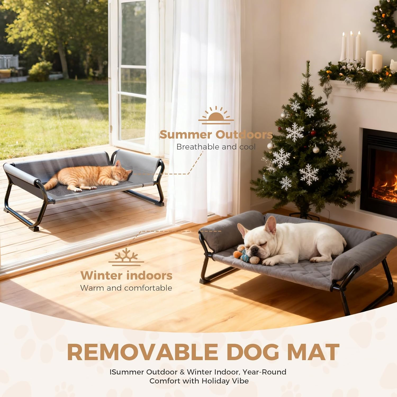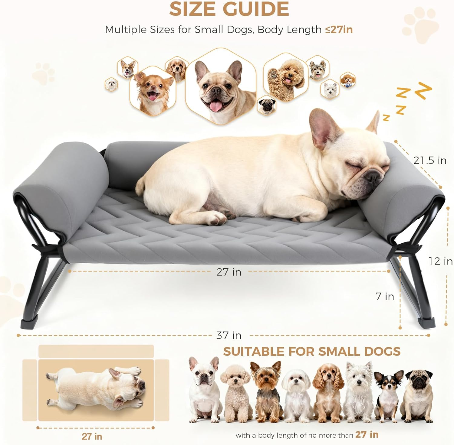Cooling Elevated Outdoor Dog Bed Cot + Orthopedic Indoor Small Dog Sofa Bed, Washable Cover & Sturdy X-Frame, 37X21.5Inches, Medium, Grey