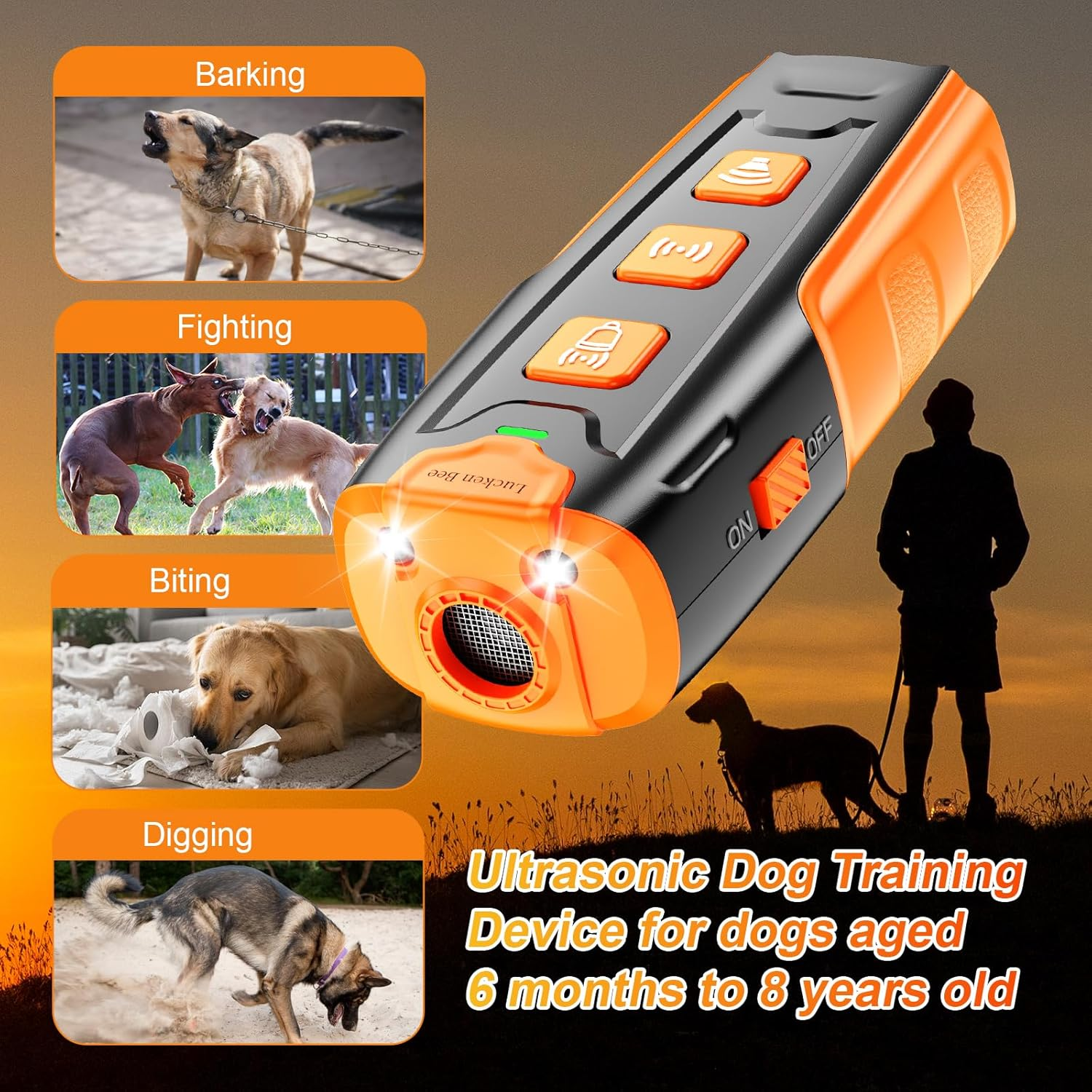 - 【3 Adjustable Modes】Peace and Quiet Result: Our ultrasonic dog bark deterrent offers 3 training modes-Sound mode, Ultrasonic Mode, Flashlight + Ultrasonic Mode, easy to use. Whether your dog is timid or stubborn, anti barking device for dogs offers 3 modes to ensure safe and effective training without stressing your dog. Different training modes can be alternated to prevent dogs from getting used to a single frequency, ensuring consistent training impact, ideal for all breeds.