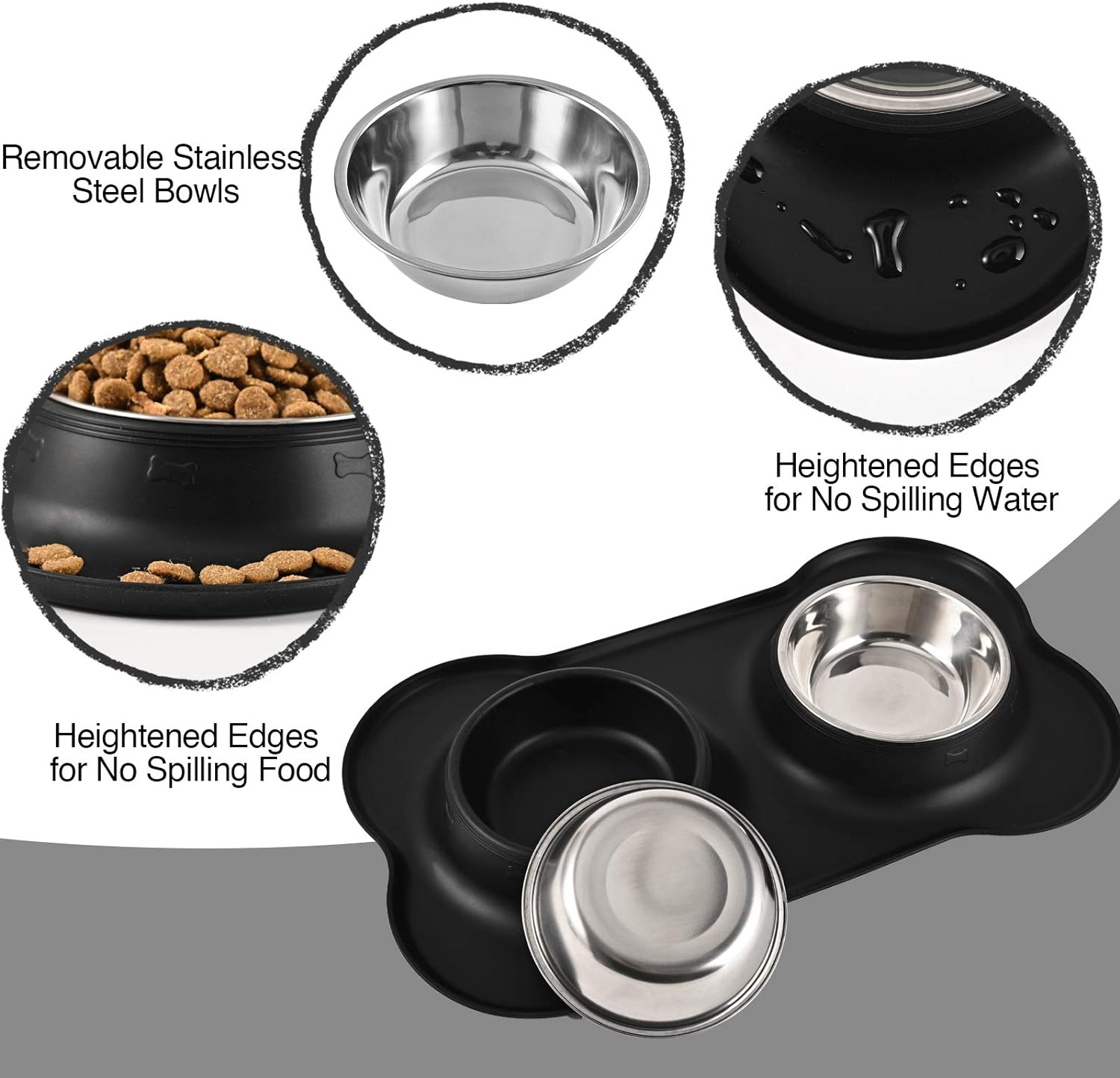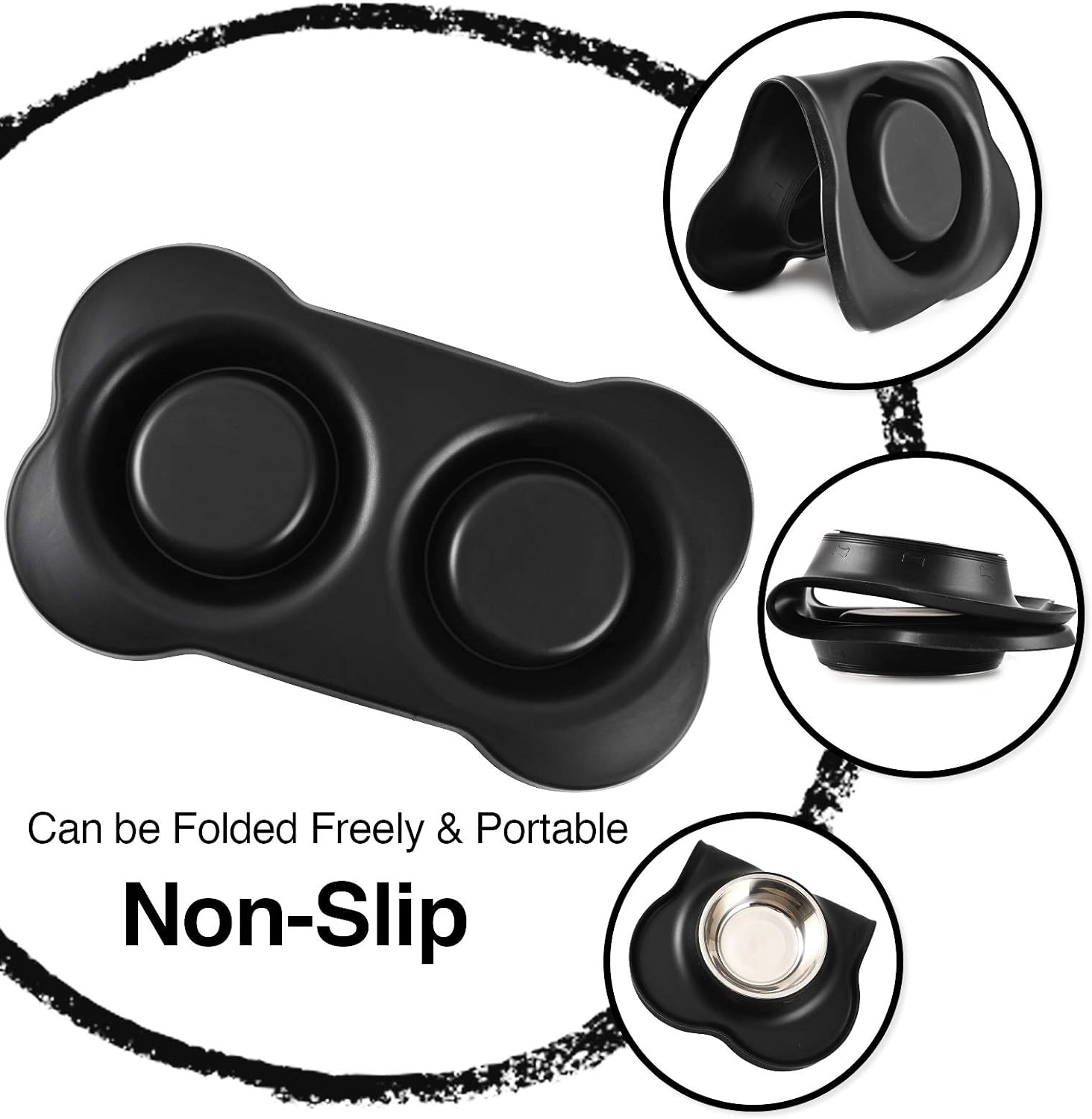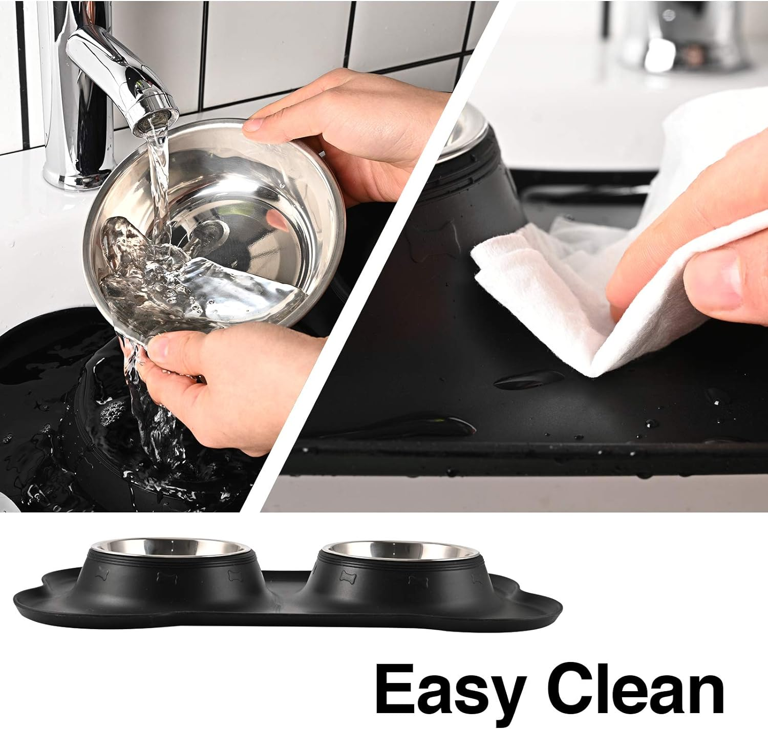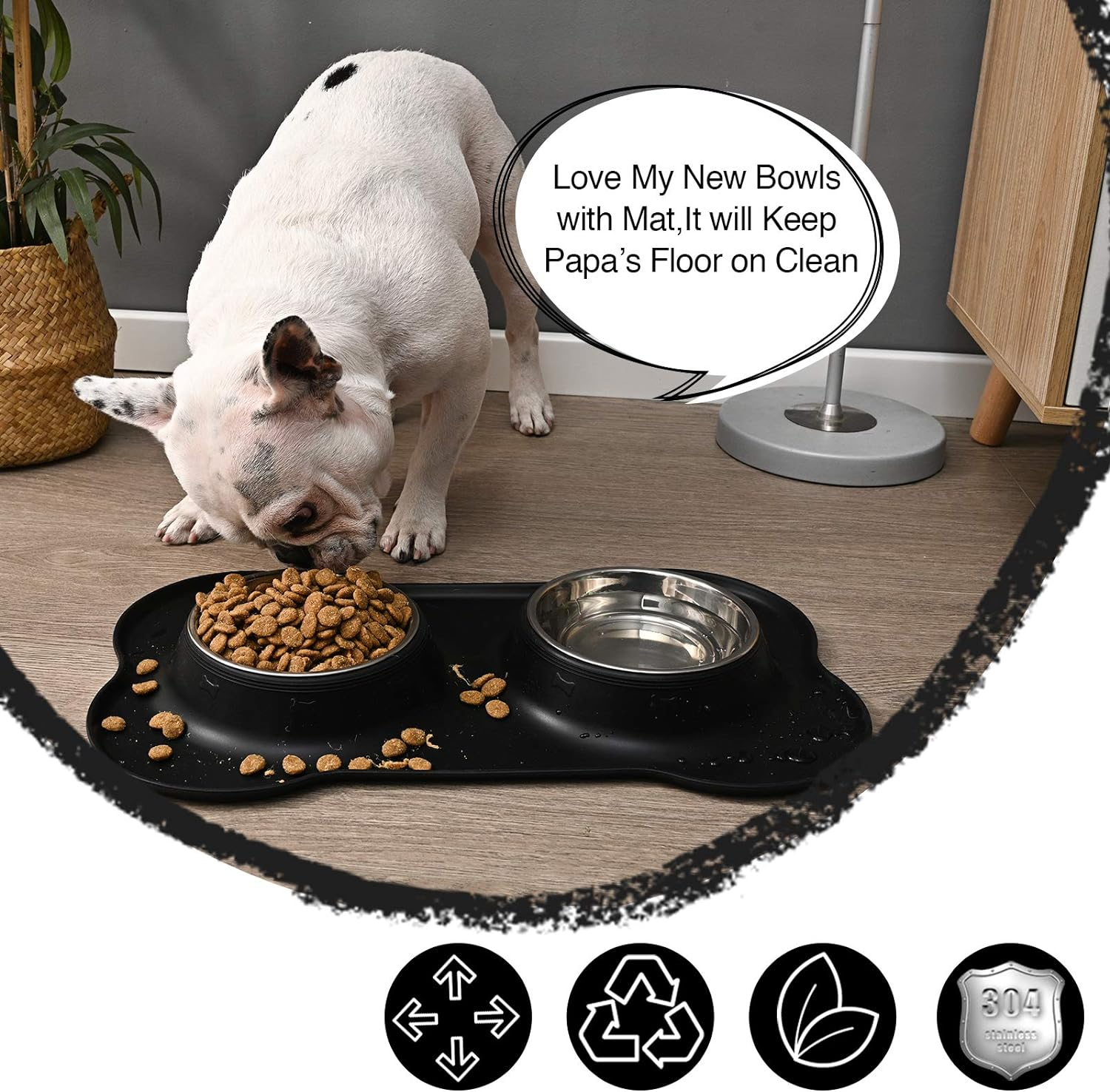 - EASY TO CLEAN&STORAGE: both bowls and the mat are easy to separate for washing, dishwasher safe; flexible silicone mat is foldable for travel and storage