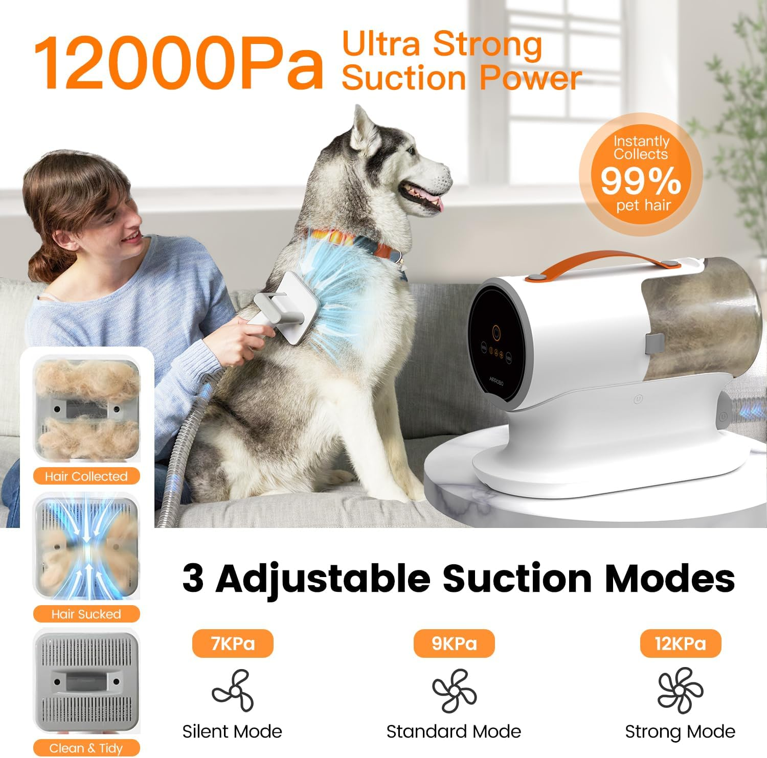 Dog Grooming Vacuum Kit,12000Pa Strong Pet Vacuum for Shedding,Grooming Hai,Quiet,Pg100,2L Large Capacity