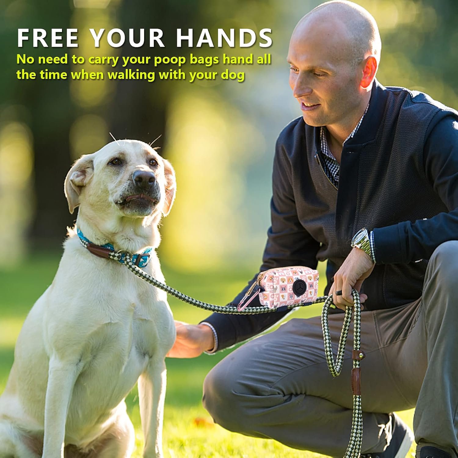 - 【LIGHTWEIGHT】: You’ll love the dog poop bag dispenser, lightweight fabric material with added O-Ring for hanging accessories. Perfect for your walks, runs, and hikes with your pup.