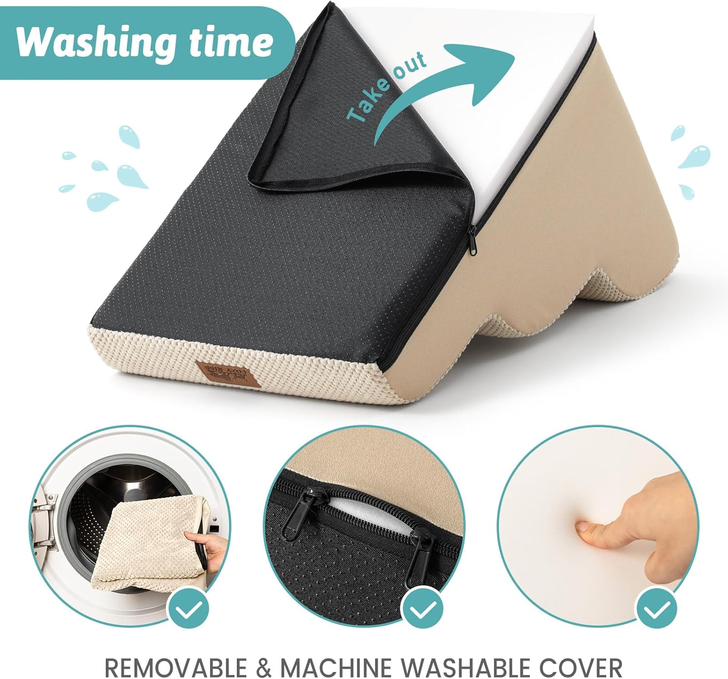 • Easy to Assemble or Clean: After cleaning the cover, please press the sponge firmly to make cover easier to cover on the sponge. The outer cover can be removed for cleaning and supports machine washing or hand washing. In addition, the outer cover contains a TPU waterproof layer with leakproof function. Note: Do not clean the sponge foam. The sponge material is light and easy to carry, and can be used indoor and outdoor