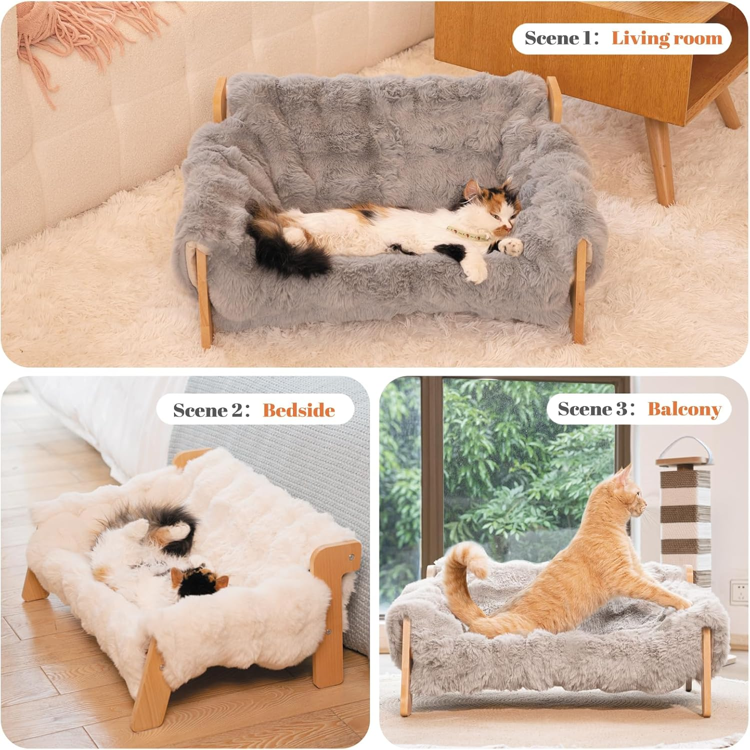 - Solid Wood Frame: The frame of the cat bed is made of beech wood imported from Germany. The surface is coated with wood wax oil. It is sturdy, durable, stable structure and capable of withstanding a weight of up to 40 pounds.
