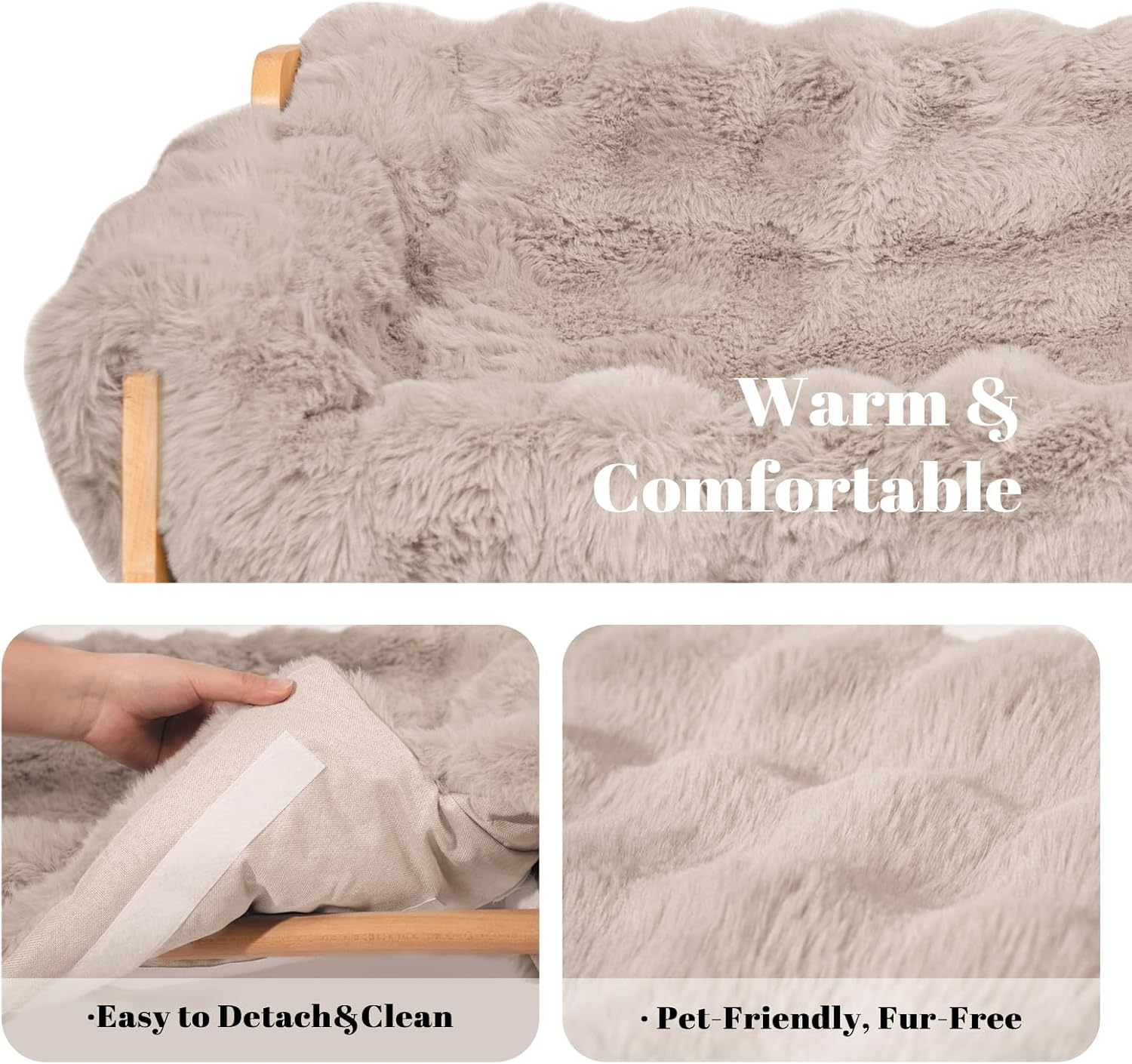 - Furry Soft Cushion: The soft cushion of the pet bed is detachable, not easy to get pet hair on, easy to clean, and machine-washable. (Wash with water below 45°C, air dry, and avoid drying with a dryer.)