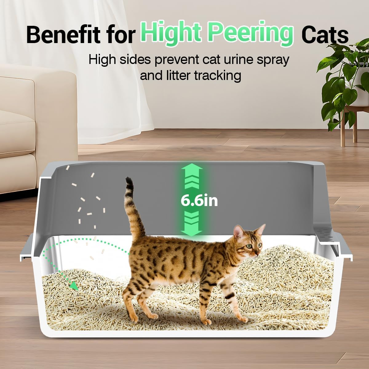 • 【Anti-Urine Leakage Litter Box】The anti-urine leakage design ensures that no mess or urine spills out, keeping your floors dry and hygienic. This stainless steel litter box provides effortless maintenance, and the leak-resistant feature guarantees long-lasting cleanliness.