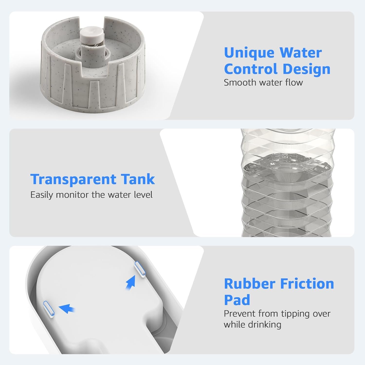 • 【Easy – Split Design】The split design makes it very convenient to disassemble the various components of this automatic water dispenser. The water tank and base can be easily separated, and each corner can be cleaned. It is recommended to clean once a week.