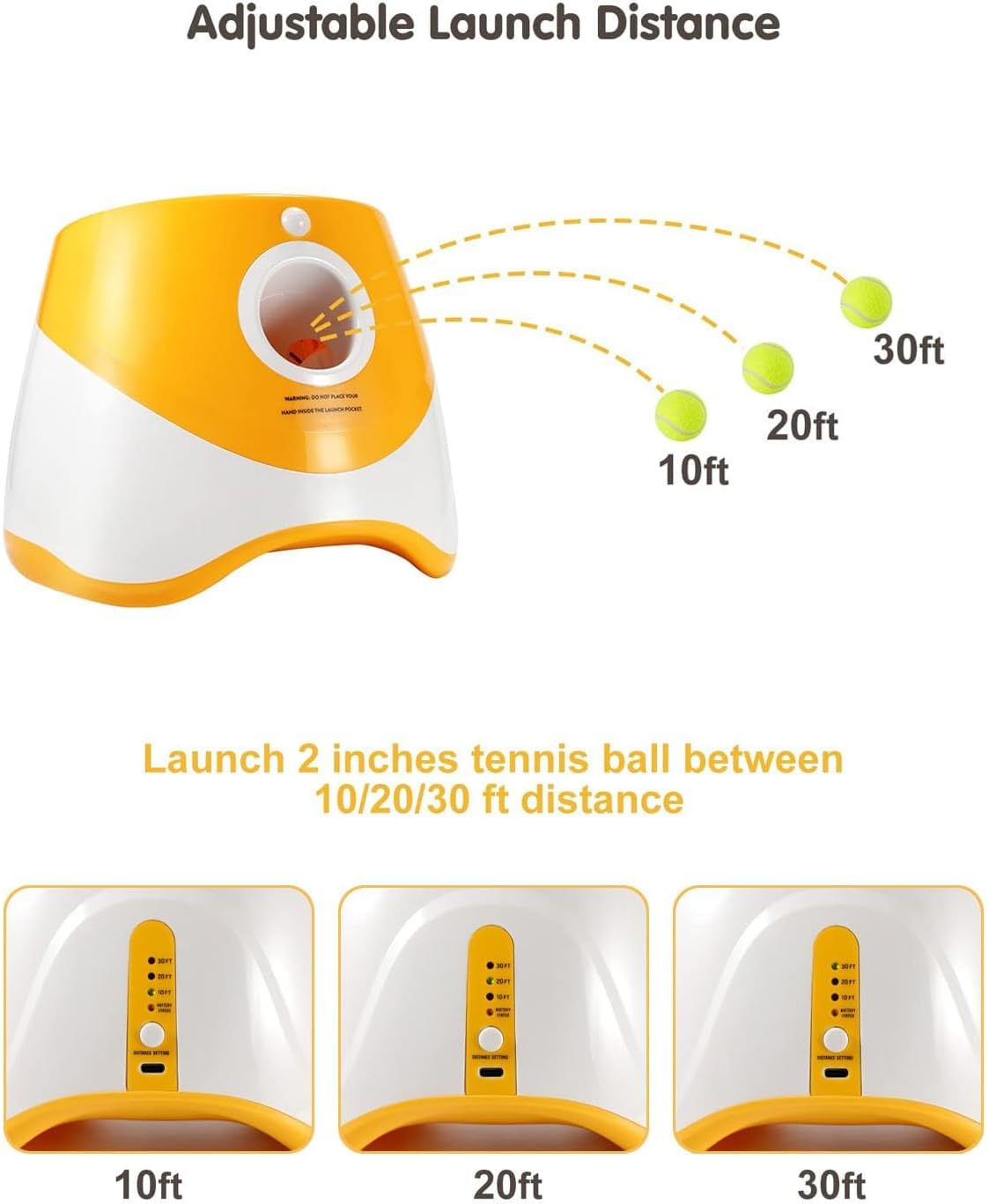 - Flexible Distance Control – This incredible automatic ball launcher for dogs features three selectable distance settings, allowing you to adjust the launch distance to 10ft, 20ft, or 30ft. Ideal for matching your small dog’s energy level and available play space.