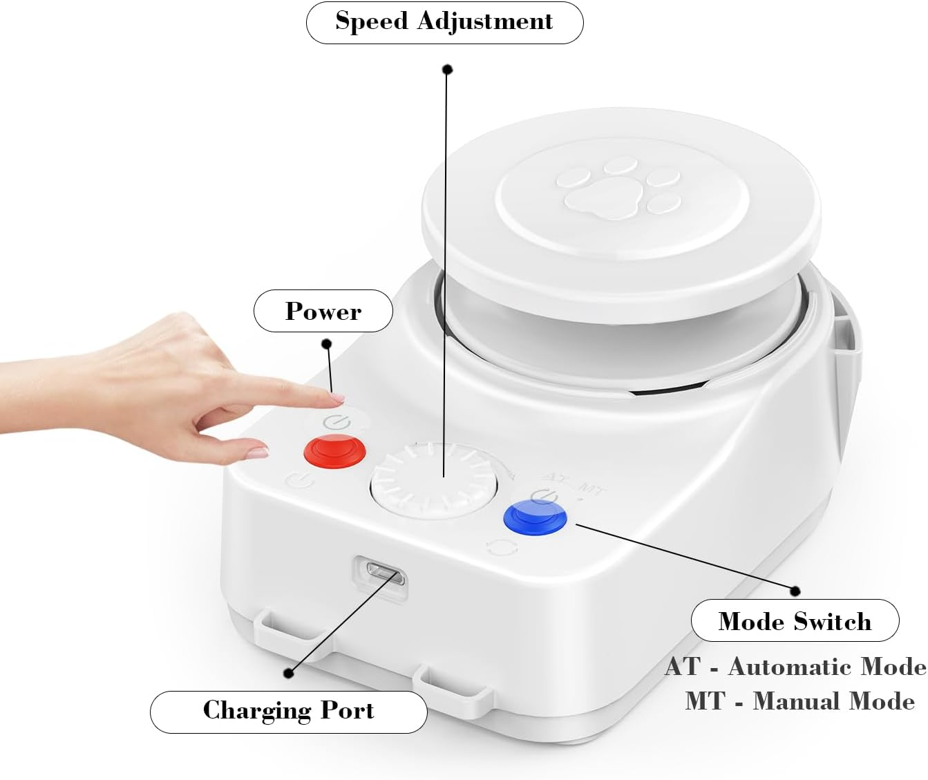 - 【Dual Modes with Adjustable Speed】The automatic cat toy offers Auto Mode with random speed, direction, and pauses to mimic real prey, and Manual Mode with 500–2500 rpm speed control—ideal as a cat treadmill or cat chase toy for all cat personalities.