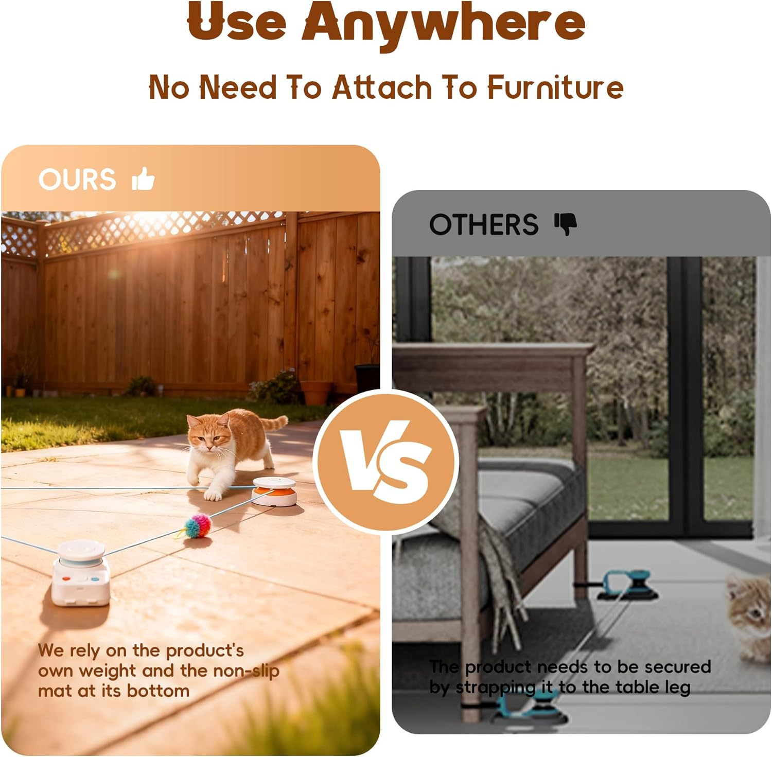 - 【Stable & Flexible Setup】This interactive cat toy has non-slip pads and added weight, so it stays stable without fixing to furniture. Cats enjoy a larger activity area indoors, making it a versatile cat toy for indoor cats.