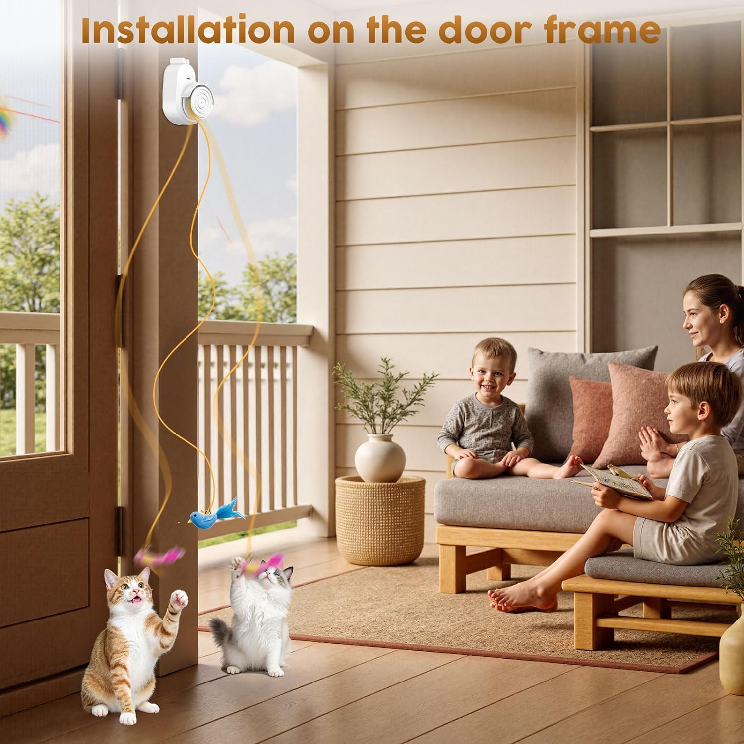 - Clip, Stick, or Handheld for Play Anywhere – A door mounted cat toy / clip on cat toy that also supports handheld cat wand play. Mount to door frames or smooth surfaces (glass, tile, wood furniture, cat trees). Vertical play keeps floors clear—ideal cat toys for indoor cats in homes, apartments, and studios.