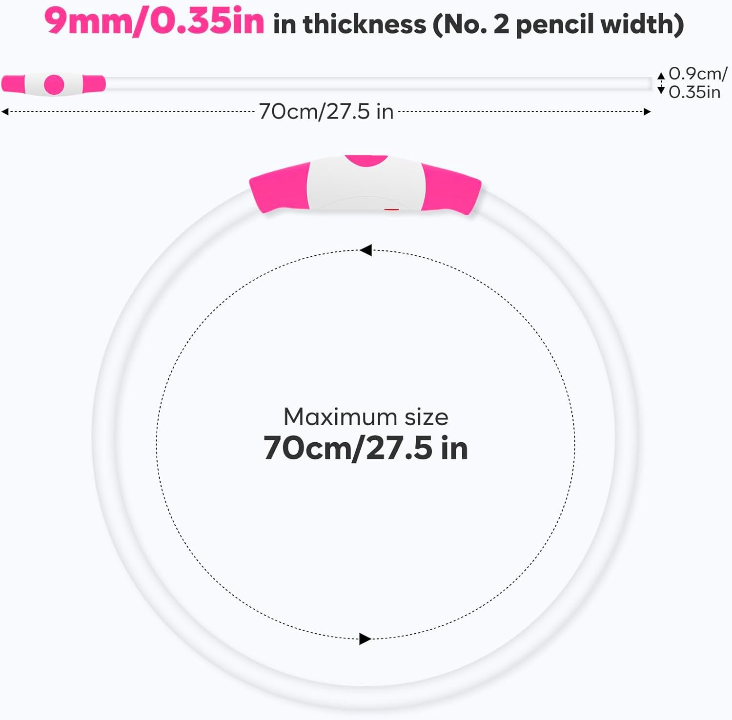 Light Up Dog Collar – Waterproof LED Pet Collar, Rechargeable & Cuttable TPU Glow Collar for Night Walking (Pink)