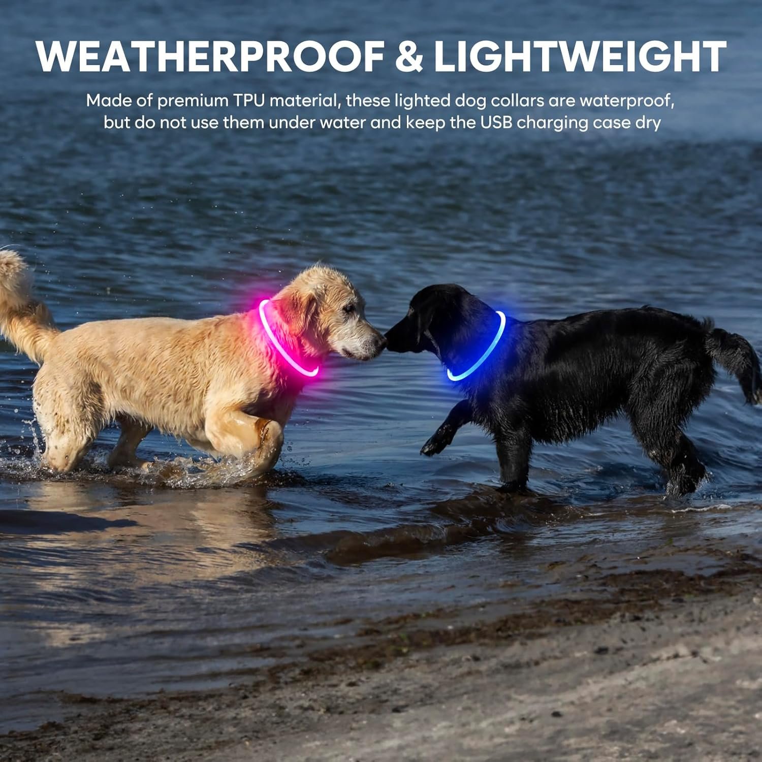• WEATHERPROOF & LIGHTWEIGHT: Made of premium TPU material, these lighted dog collars are waterproof, but do not use them under water and keep the USB charging case dry. Perfect for all weather conditions