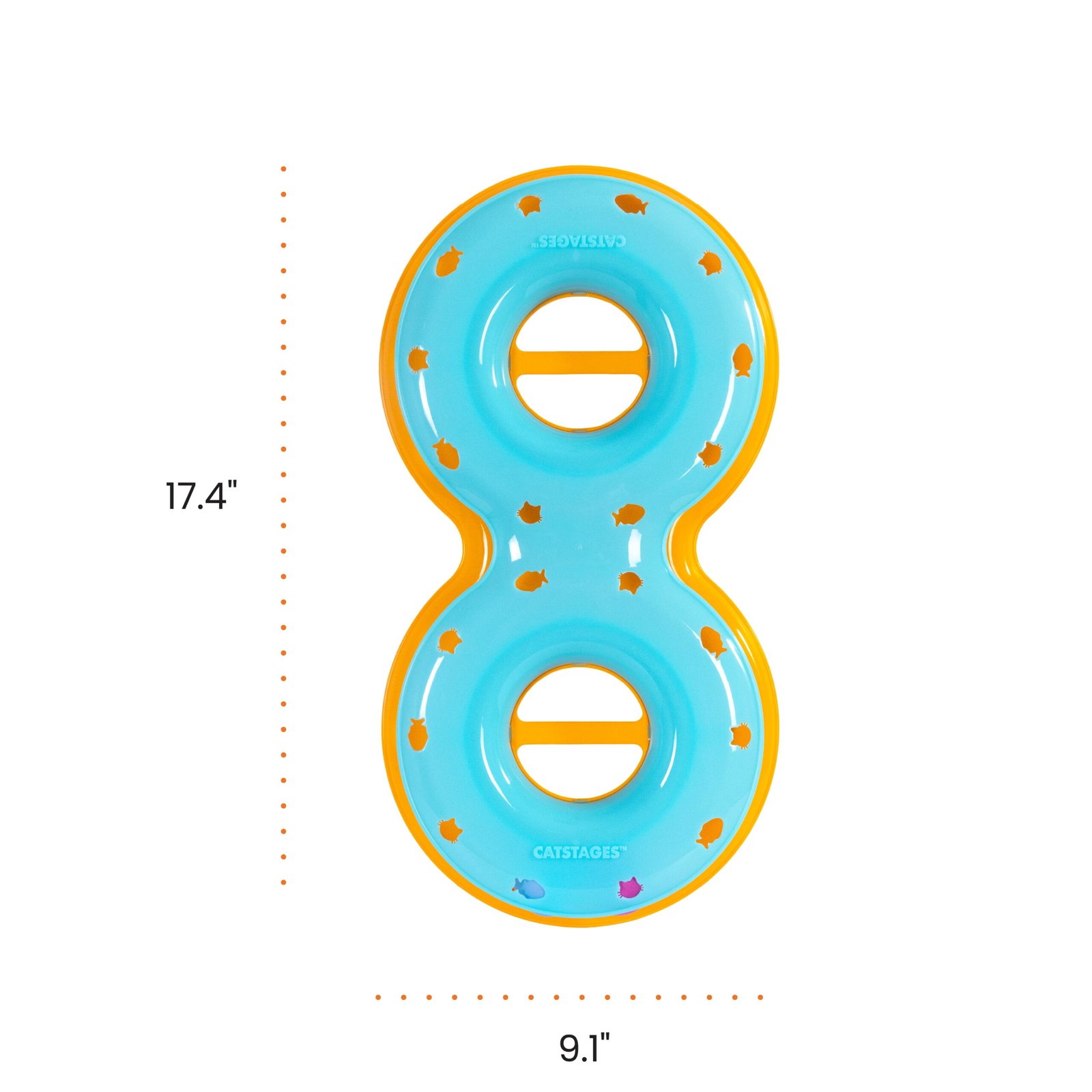 Introducing the Catstages Meowsome Infinity Ball Track: a figure-8 shaped, infinity cat ball track that promises endless entertainment for your frisky feline. Two spinning balls are included for your cat to hunt and chase around the cat track, ensuring the endless bat n’ swat fun your cat craves. Small cat and fish shaped cutouts create vantage points for your cat to peek in and observe their “prey” racing along the track, adding even more excitement and hunting stimulation to the game. Foam feet at the base of the cat ball track keep the track securely in place during spirited play sessions. No more interruptions or slipping – just uninterrupted fun for your furry friend. And here’s the cherry on top – compatibility with Catstages topper toys. Elevate your cat’s playtime by adding compatible two-in-one topper cat toys for even more ways to play. It’s versatility at its finest, offering your cat a variety of engaging activities to provide exercise and mental stimulation, enrich their playtime, and suit their ever-changing moods.