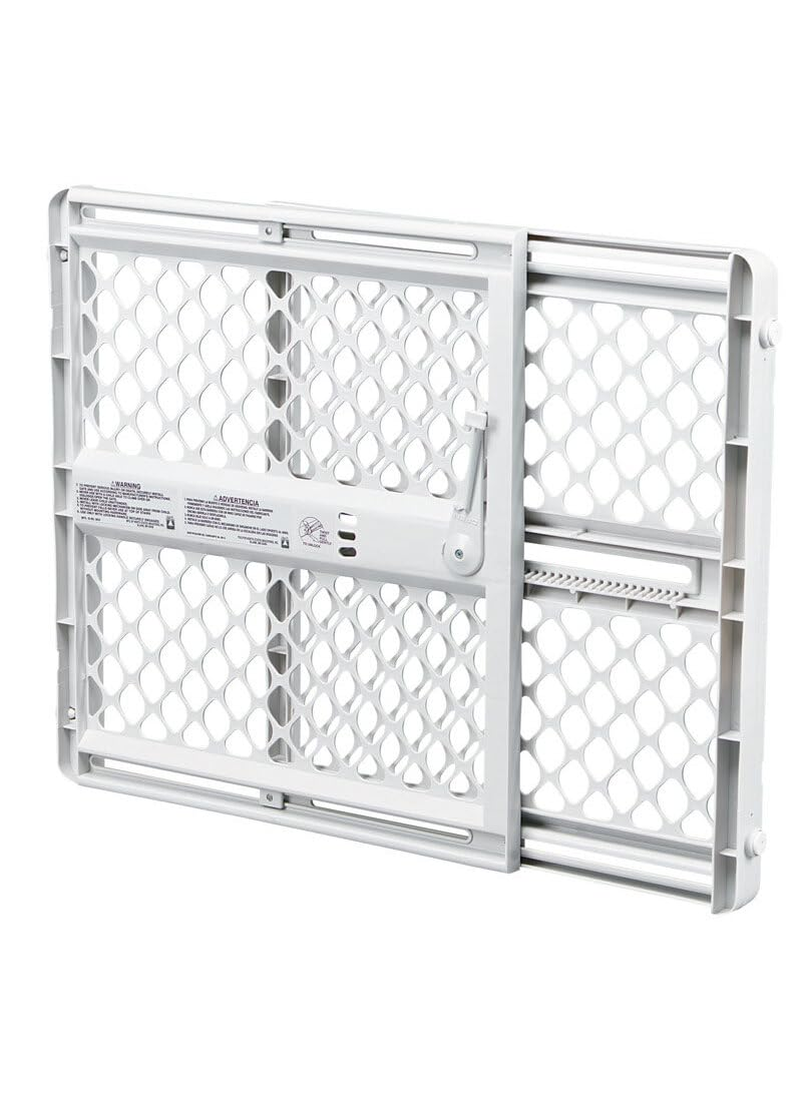 • [Stylish and Dependable]: Comes in an appealing gray finish and fits seamlessly in any of your standard openings. The durable, American-made plastic gate is sturdy and hard to climb! Perfect as a puppy gate or cat gate for doorway use.