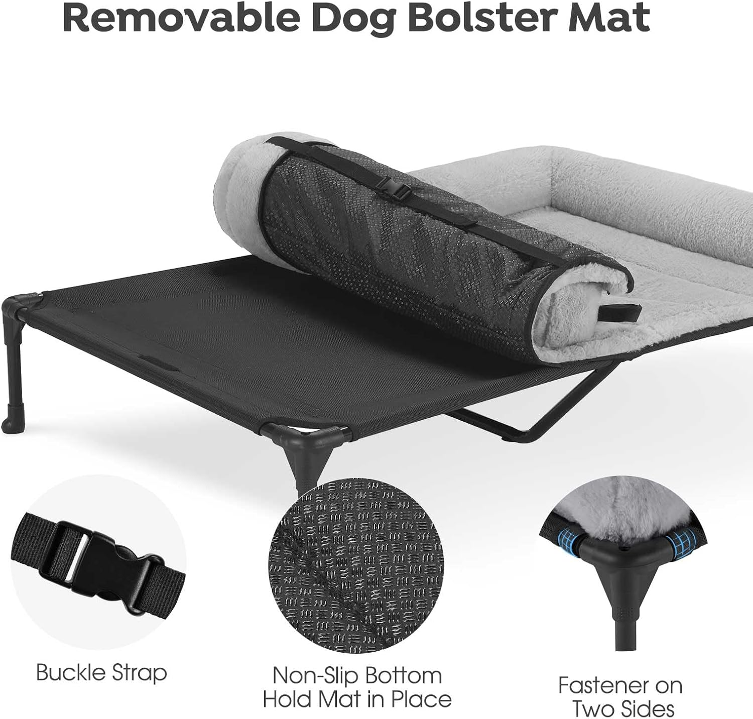- Comfy & Fluffy Bolster Cushion: The fluffy bolster offers excellent neck support, encouraging restful sleep. Crafted with a deluxe plush surface, it’s super soft and calming. The top mat also features a non-slip base and secure fastenings for a stable fit