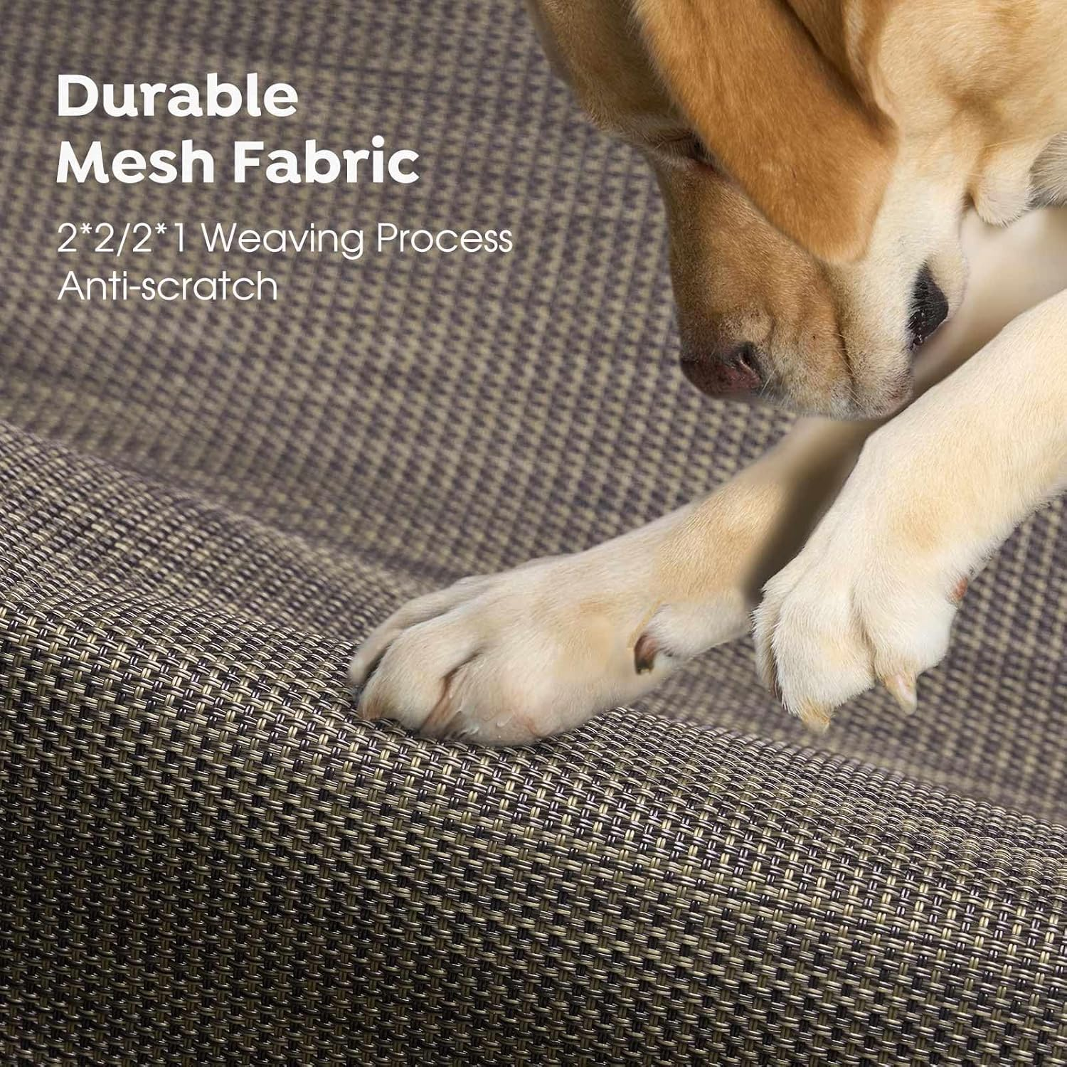 - Stay Cool Ever! Crafted of Textilene mesh fabric, the cooling dog cot allows air to flow, keeping your pets cool while they relax in the heat. Also allow water or urine to go thru, no puddles formed. Besides, the teslin mesh features heat-resistance, sturdy, and breathability.