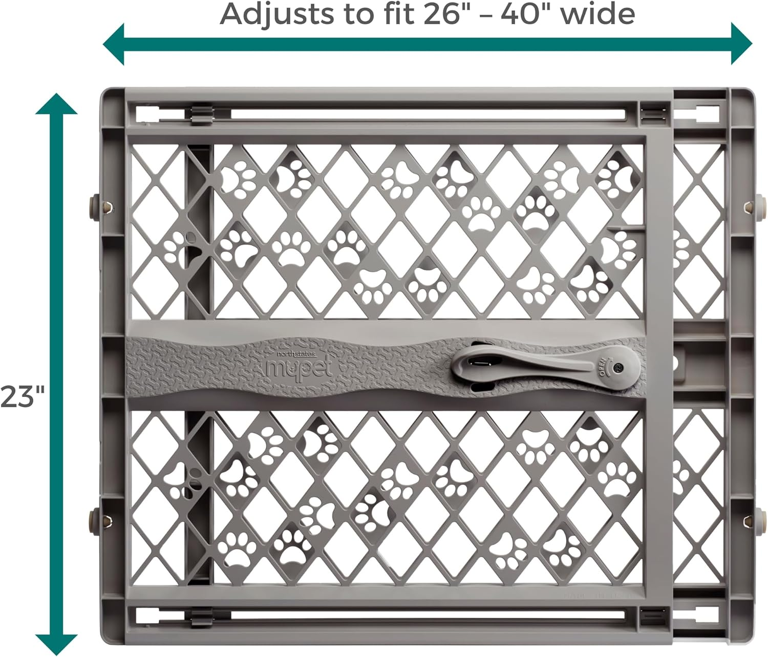 • [Worry-Free Safety]: Our expandable dog gate is great for doorways and blocking off other indoor spaces to keep your pet safe and secure. This durable puppy gate is made of strong, appealing fieldstone gray plastic with adorable paw print accents.