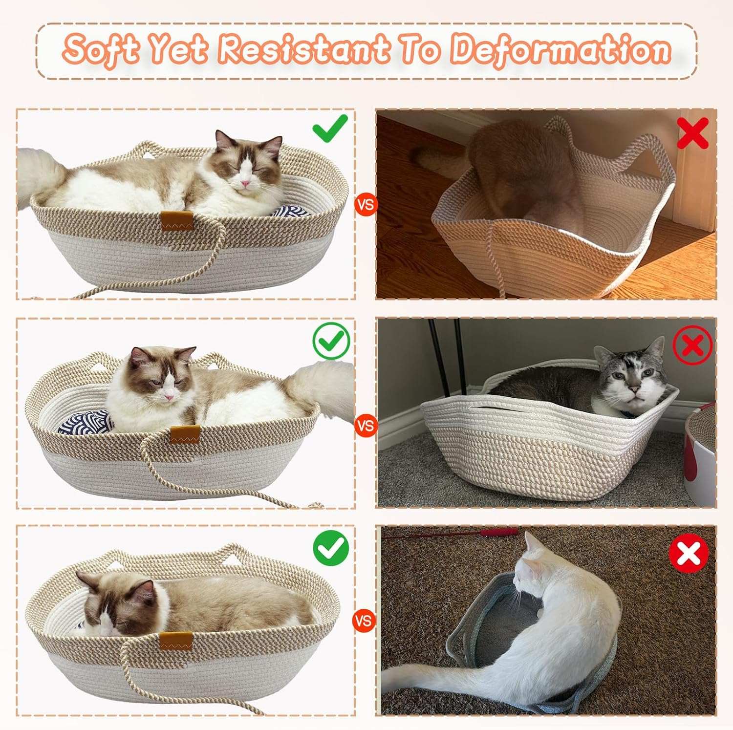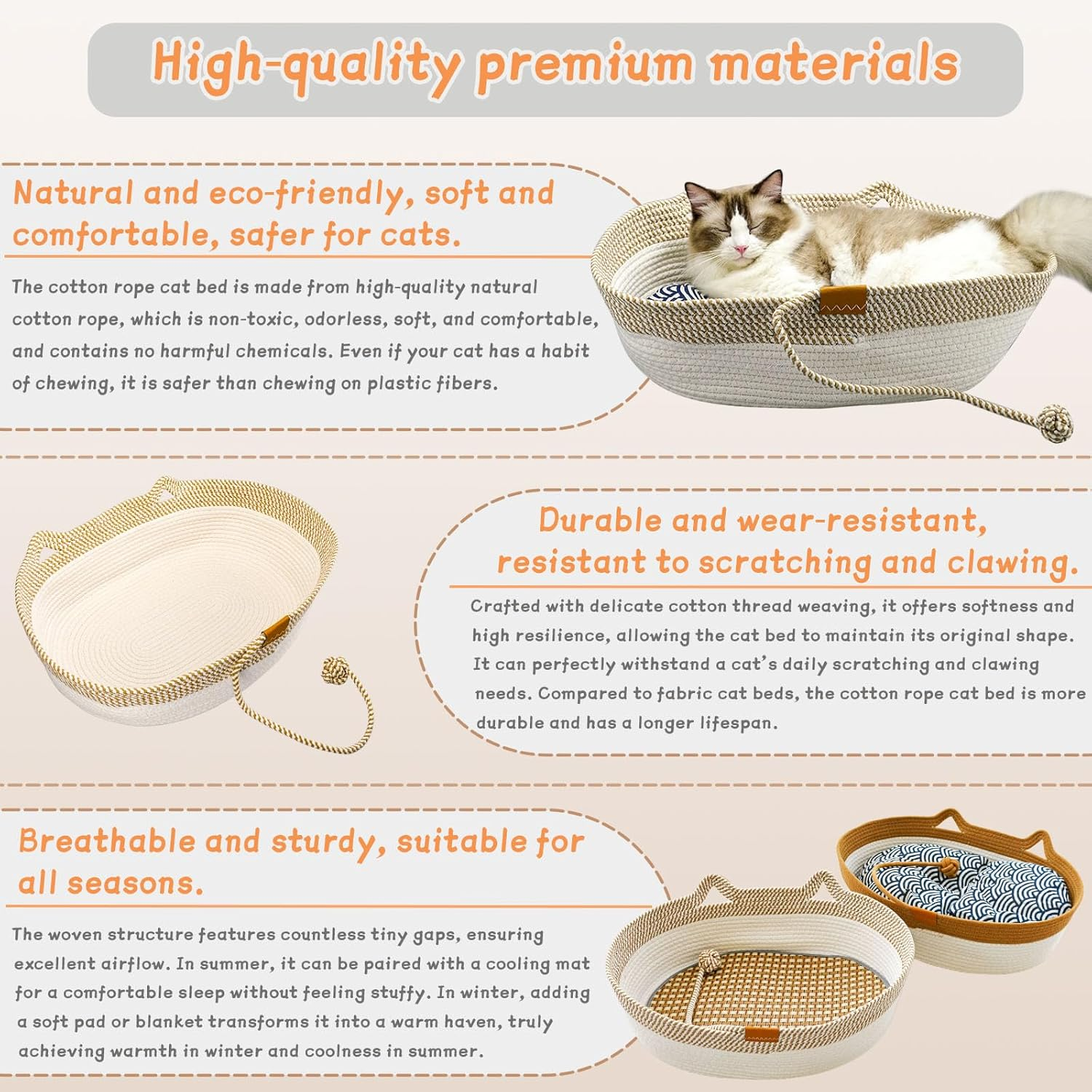 - 【Preferred Material】: Pet beds for small dogs are made of high quality cotton rope woven on both sides, soft and flexible material, wear-resistant and scratch-resistant and not easy to deform, and there are winter and summer replacement pads, which can be used all year round.