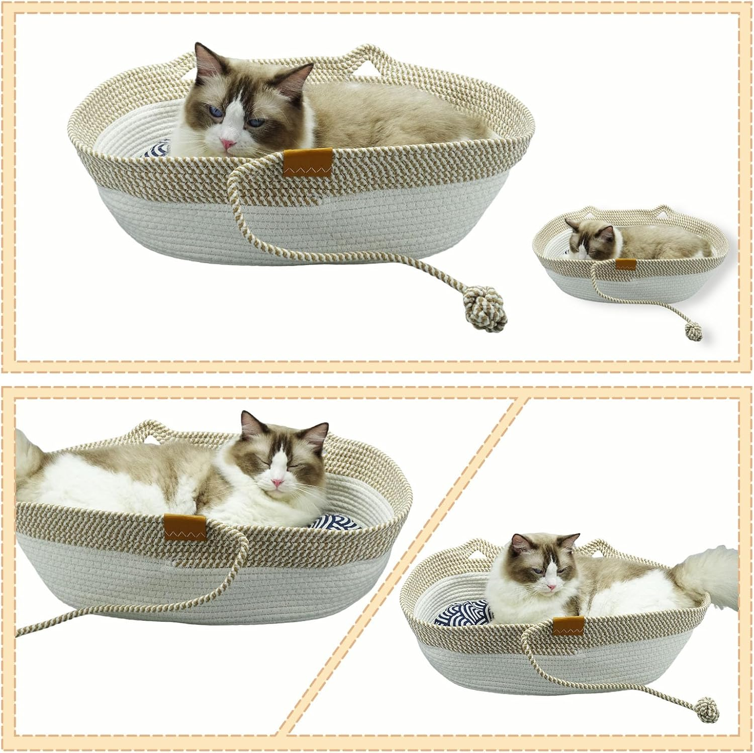 - 【Comfortable & Secure Design】: The hand woven cat bed basket nest round with Toy Tail features a semi-enclosed basin shape with raised edges, offering a cozy and secure retreat for your cat to relax in comfort