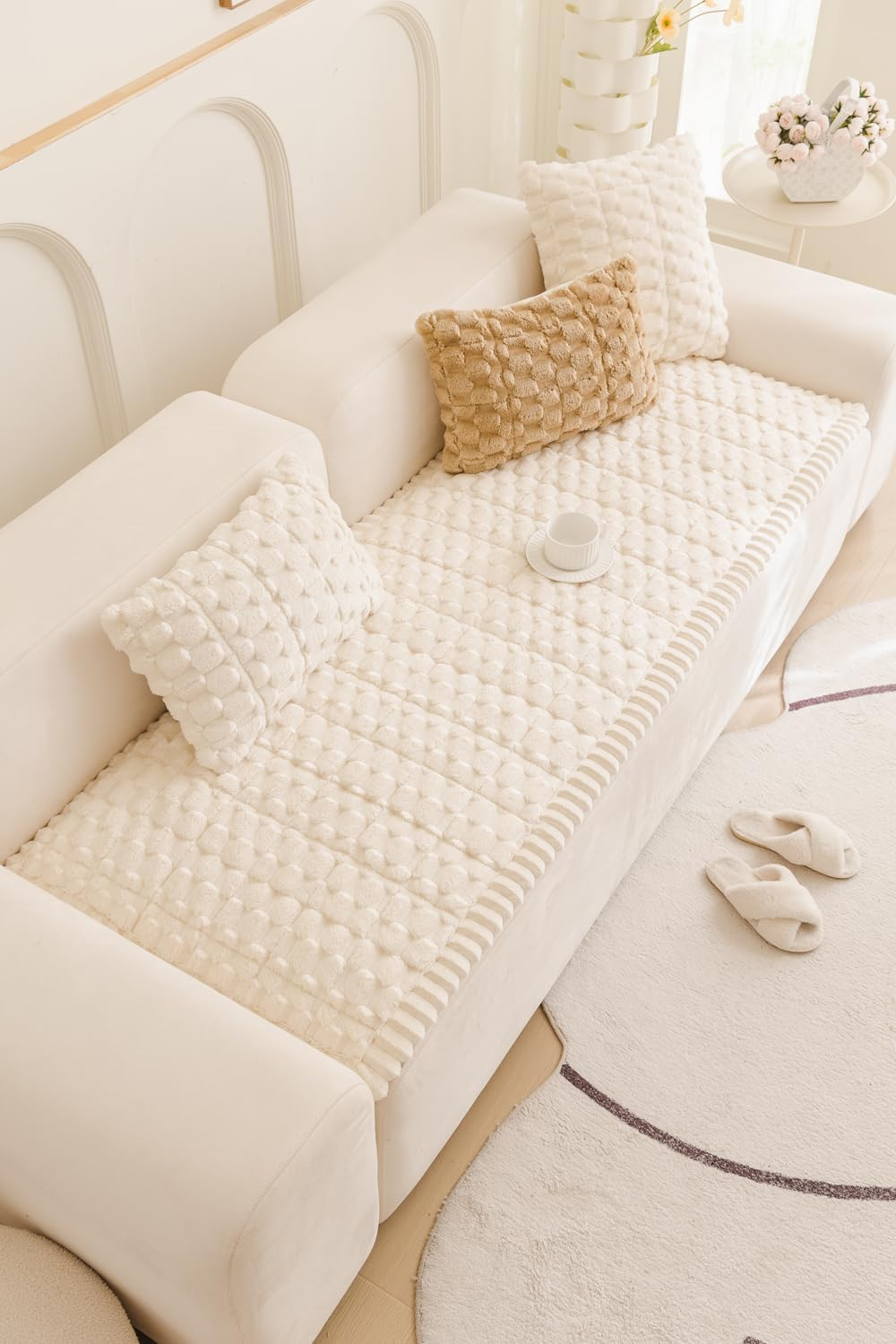 Tiny bottom granules grip sofas tightly—stops sliding when pets jump, no sofa scratches.