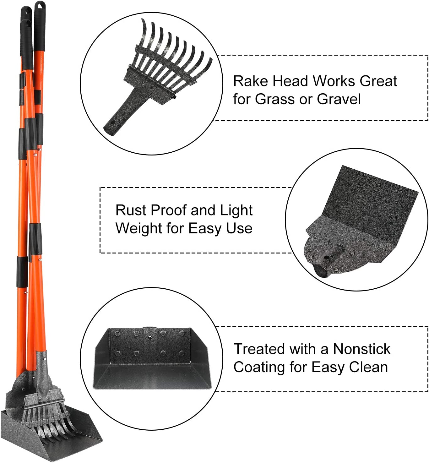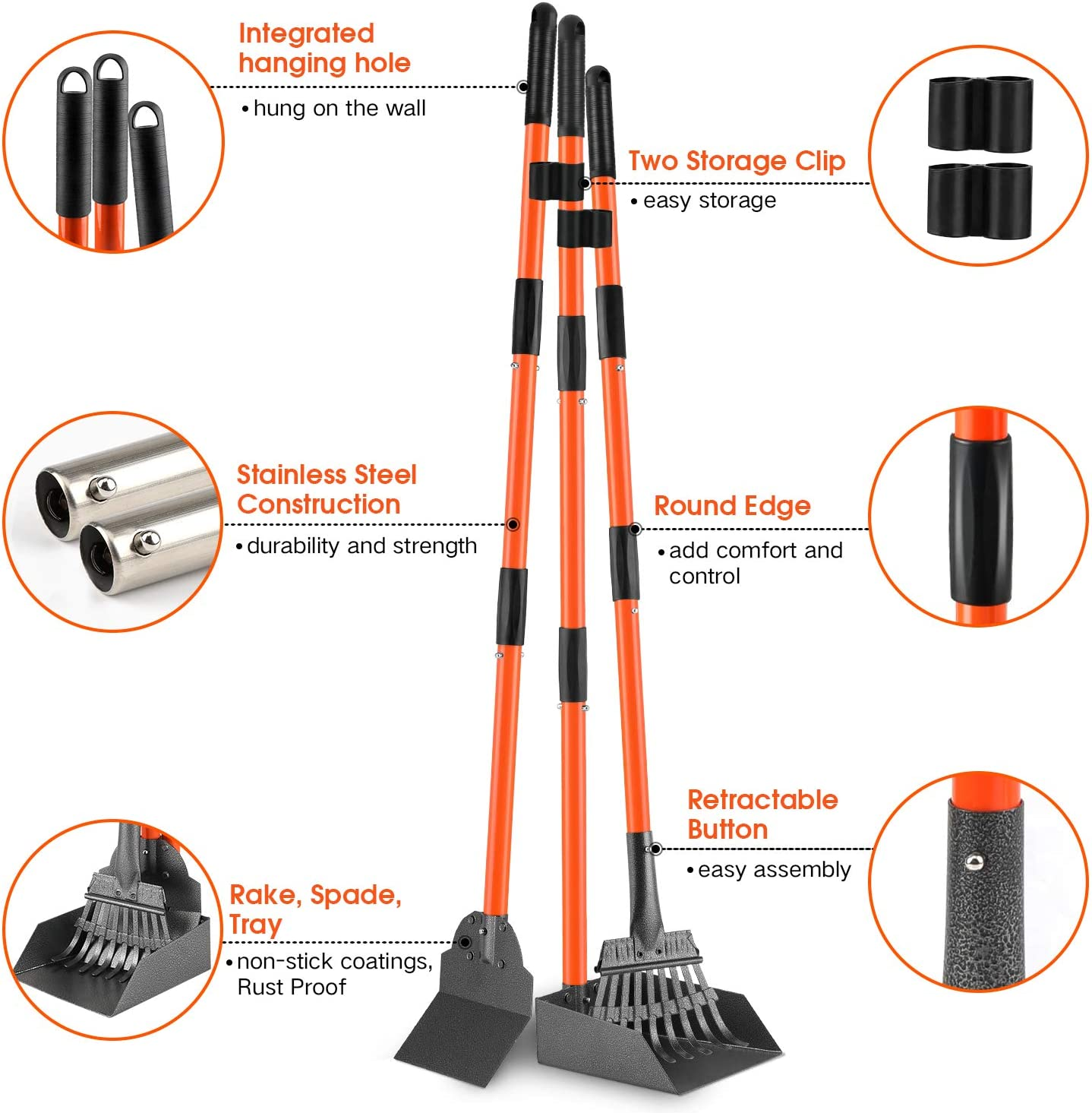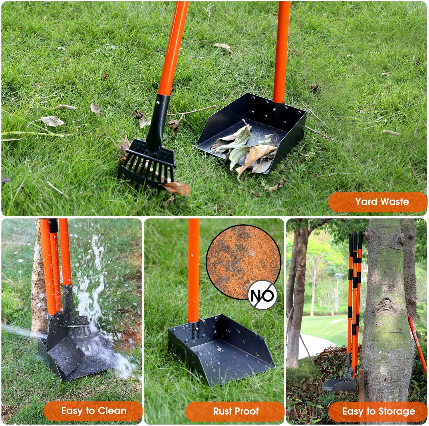 Pooper Scooper, Detachable Long Handle Dog Pooper Scoopers with Heavy Duty Metal Rake, Tray & Spade, Durable Pooper Scooper for Large Medium Small Dogs, Great for Lawn, Grass, Dirt, Gravel, Yard